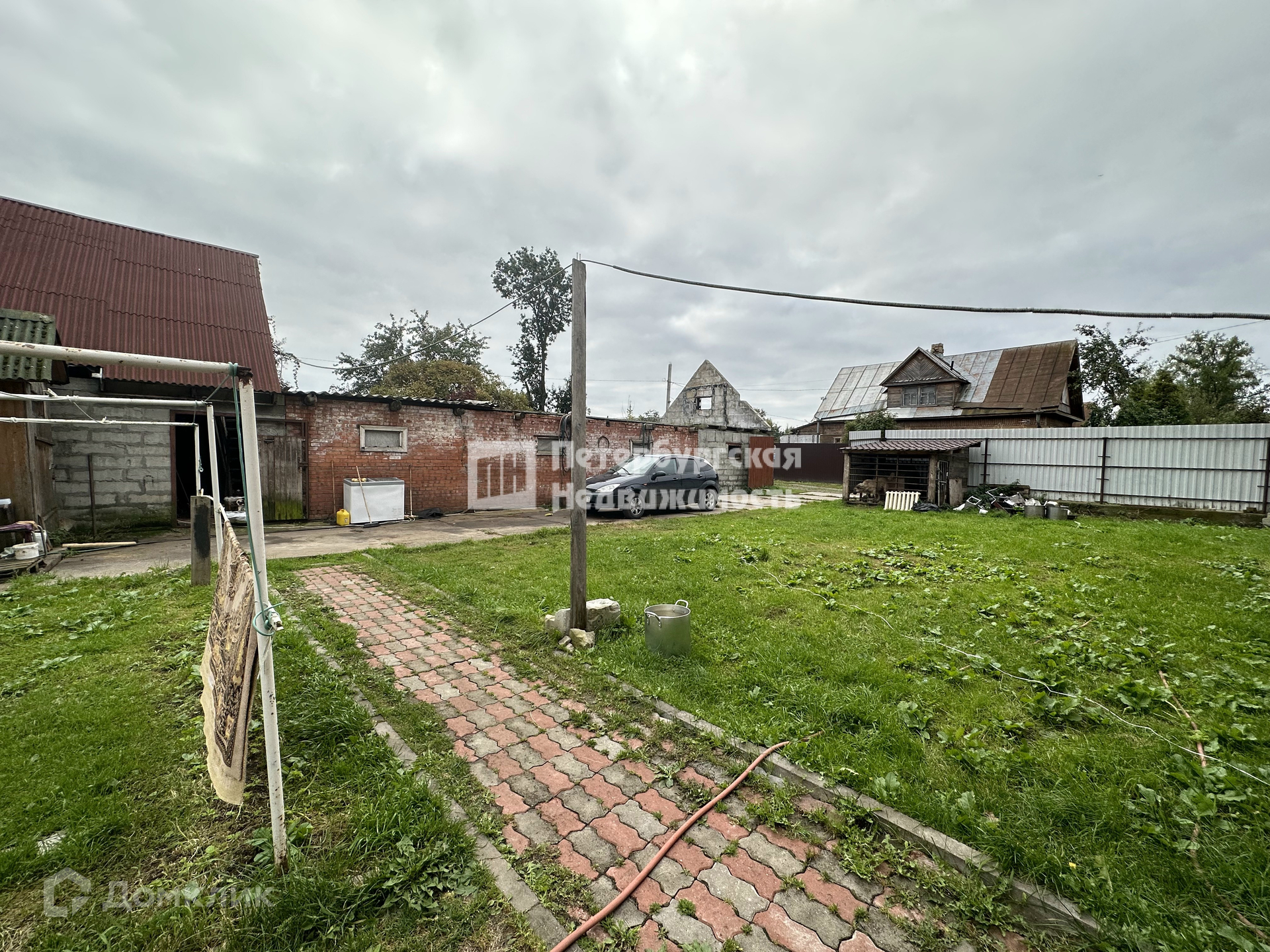Участок газон, поместится 5-6 машин (помимо гаража).