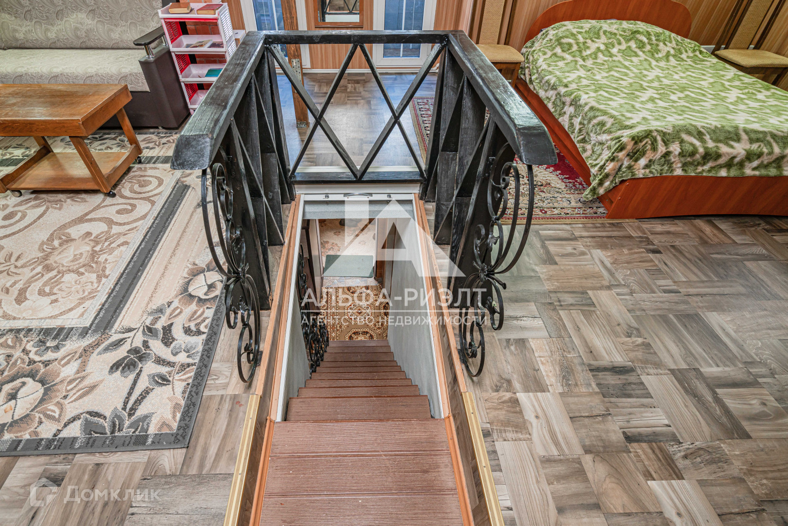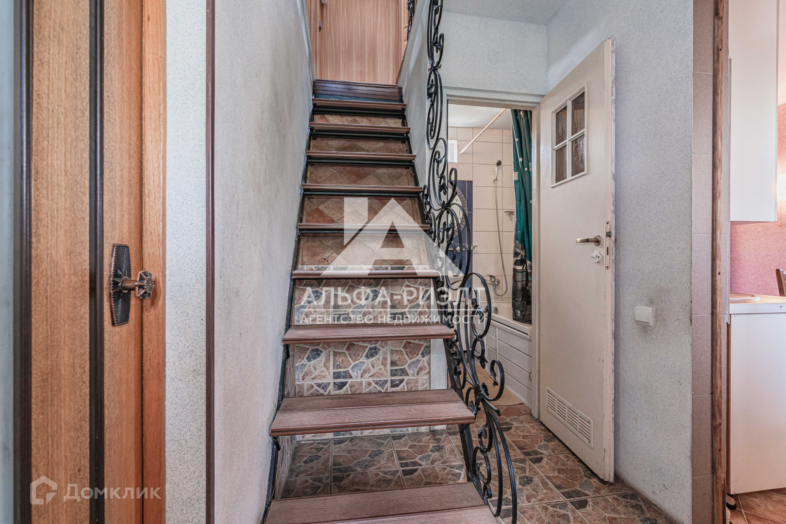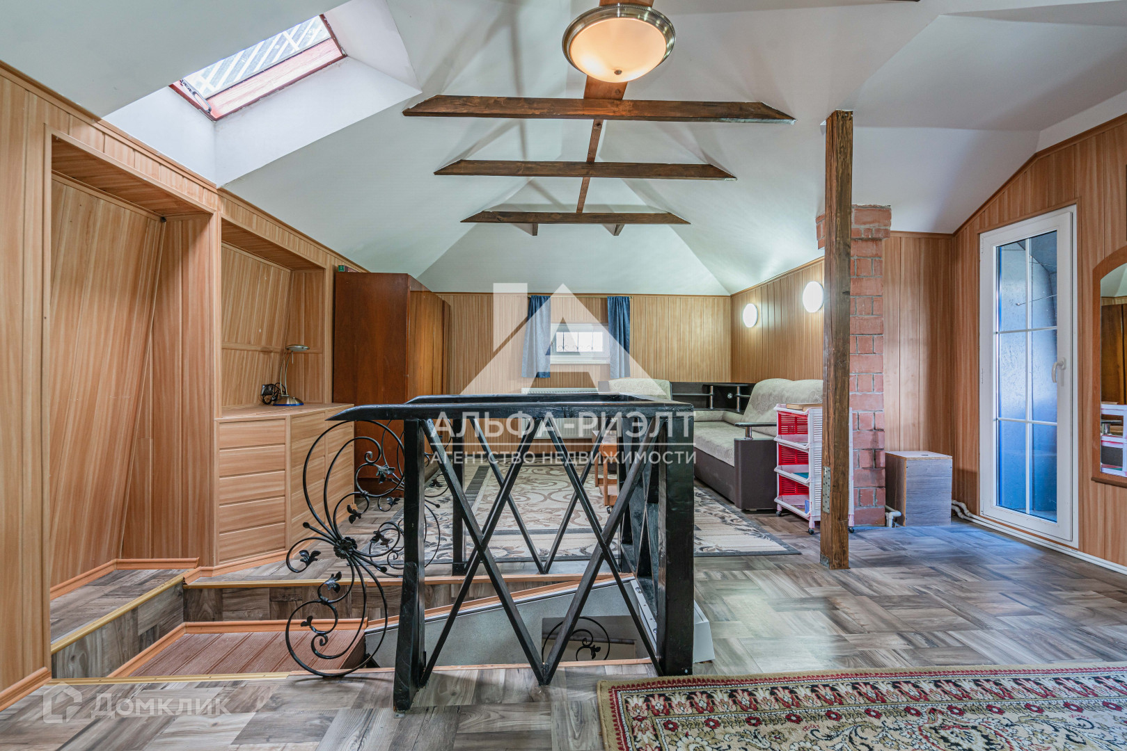 На второй этаж ведет кованная лестница