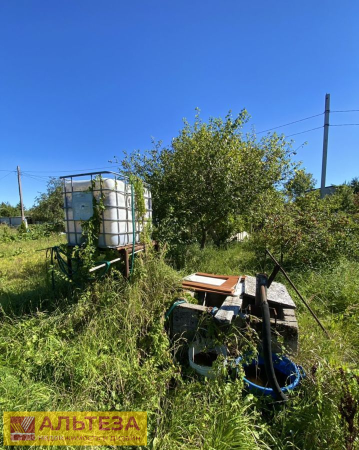 Земля в собственности, с/х назначение. Участок ровный, сухой, благоустроен, огорожен. Есть фундамент под веранду . На участке теплица, сарай. Посажены плодовые деревья и кустарники. Дренажная канава прочищена и частично проложена труба. На участке есть колодец и деревянный сарай.