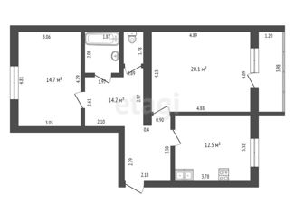 Общая площадь: 57.4 м2
