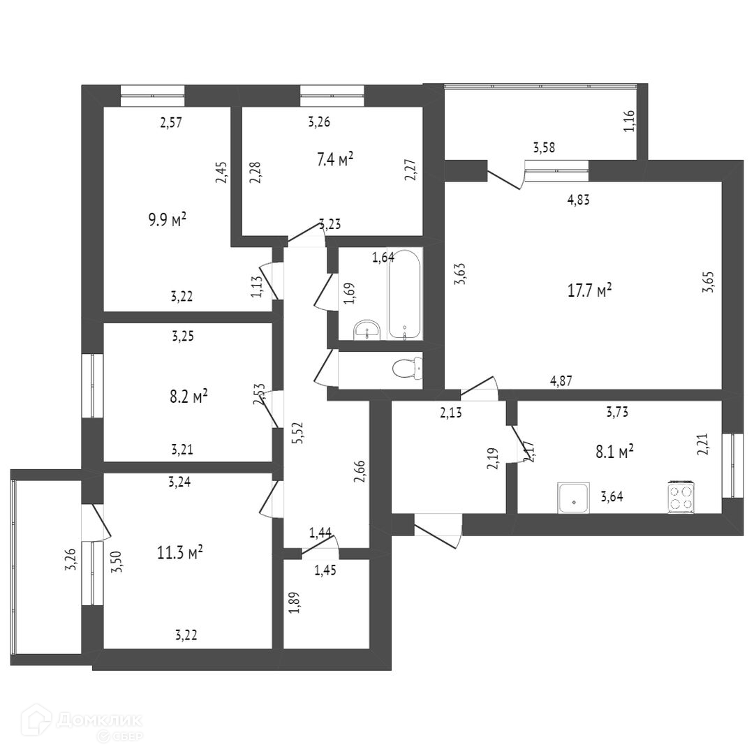 Общая площадь 80.1 м2