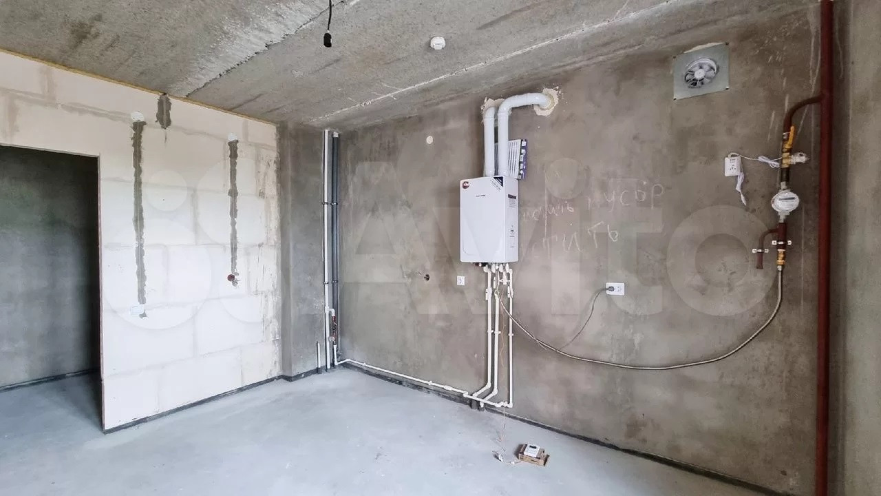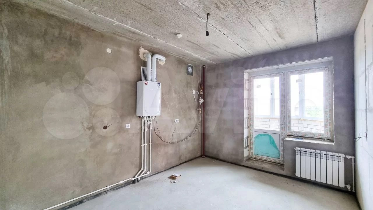 В квартире выполнено черновое оштукатуривание внутренних несущих кирпичных стен, установлены приточные вентиляционные клапаны. На полу выполнена цементно-песчаная стяжка полов. Установлены счетчики на холодную воду.