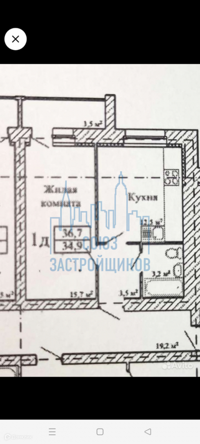 1-комнатная квартира, 37 м2, этаж 4 / 9, на продажу в посёлке Строитель, Придорожная улица, 3В