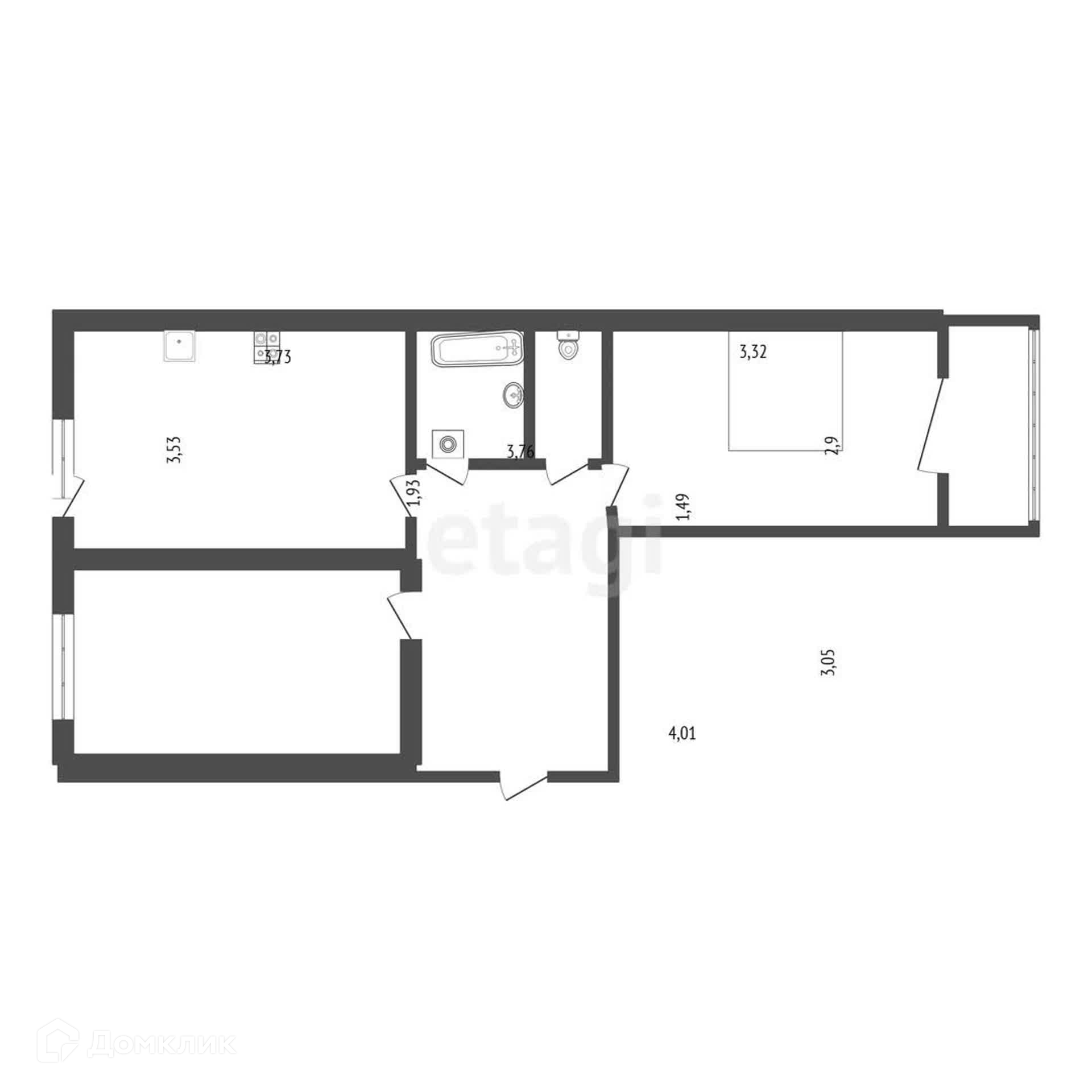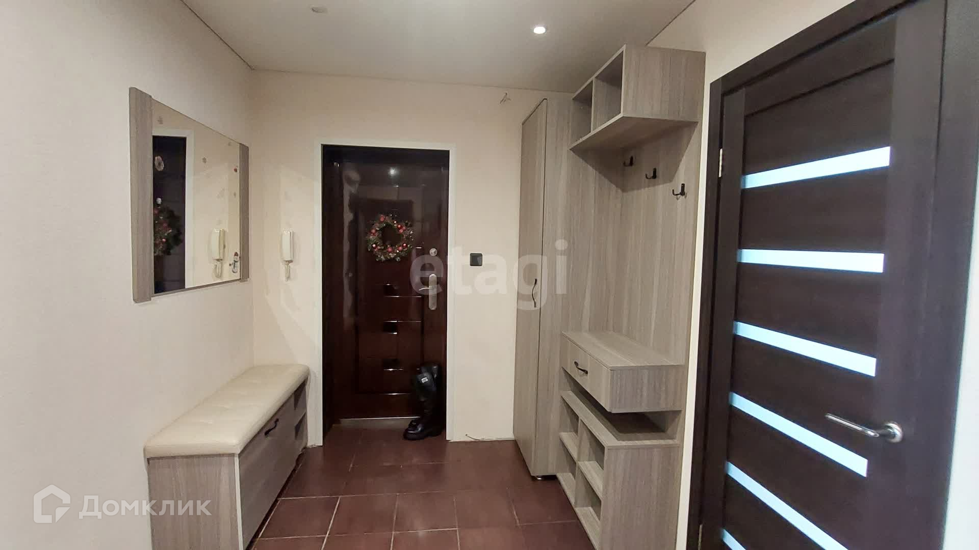 Квартира частично мебелирована. Новым владельцам останется кухонный гарнитур с варочной панелью и холодильником, стиральная машина, двуспальная кровать, шкаф, мебель для прихожей.