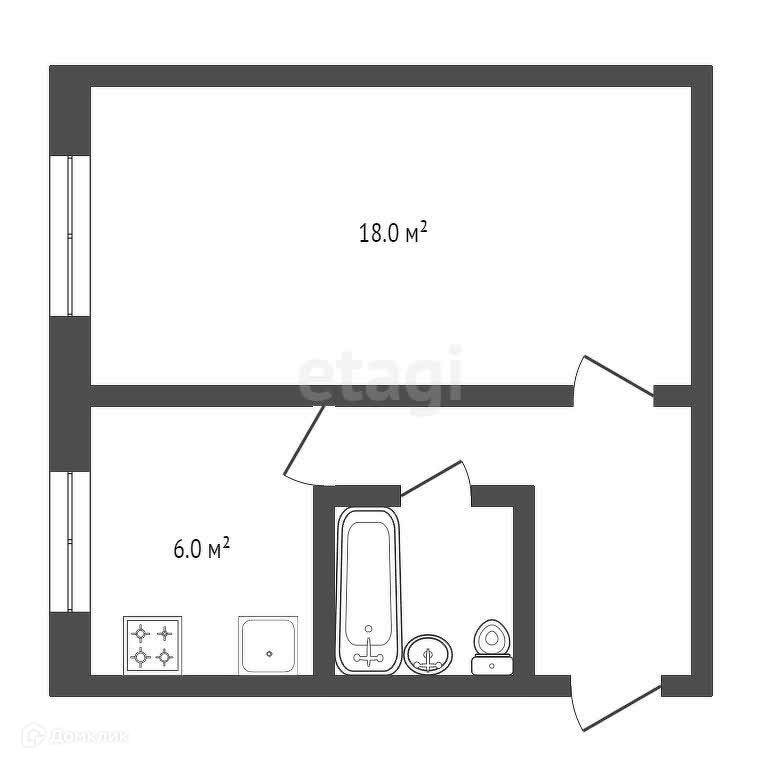 Балкон, лоджия 1 балкон