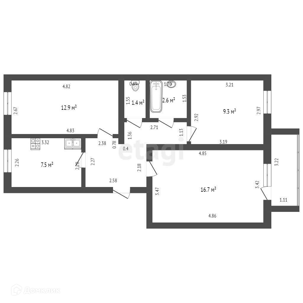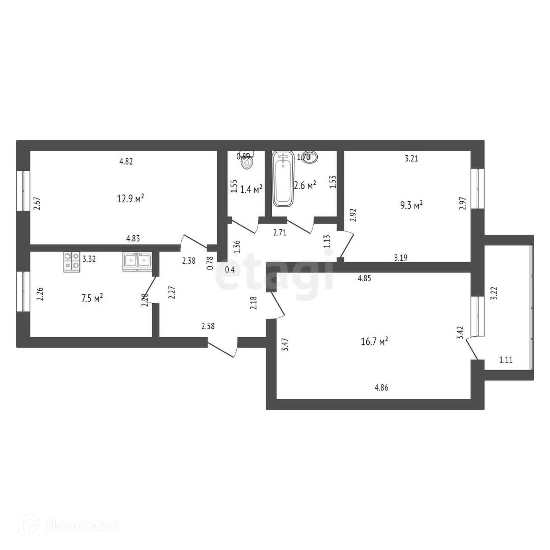 Общая площадь 59.6 м2