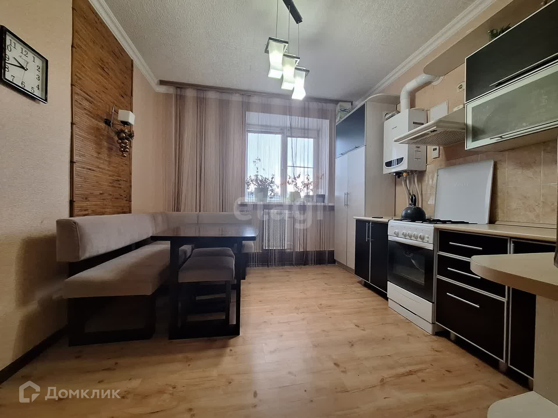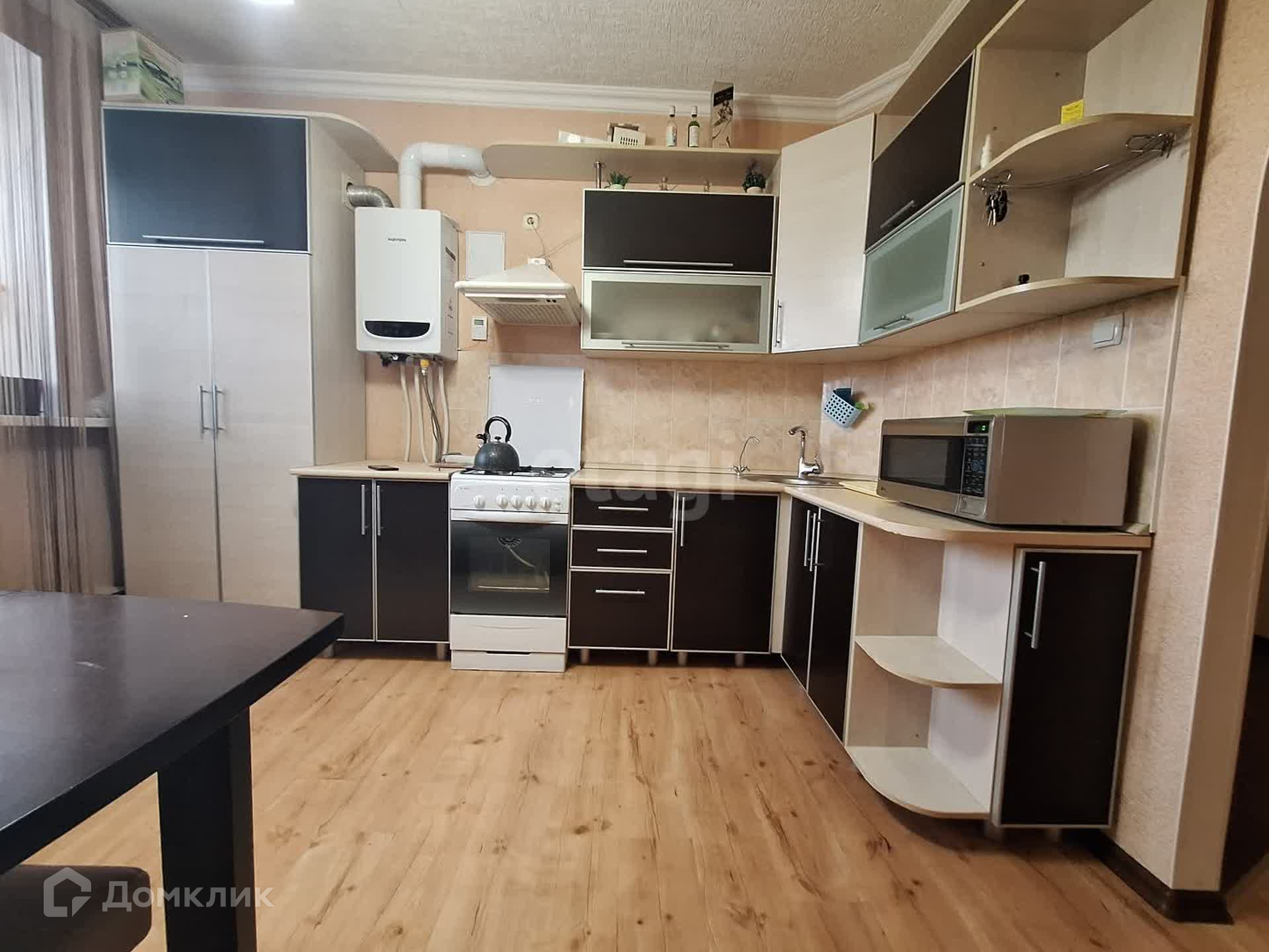 В большой комнате кондиционер, в кухонном гарнитуре спрятан отопительный котел.