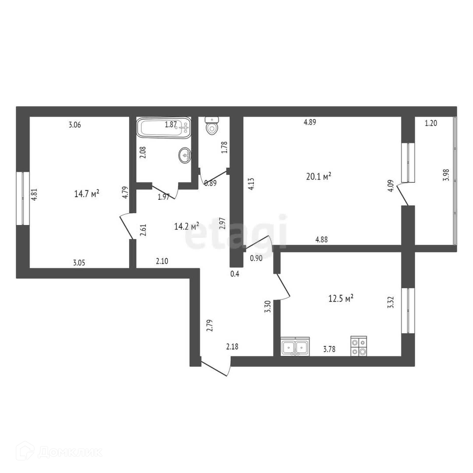 Общая площадь 66.9 м2