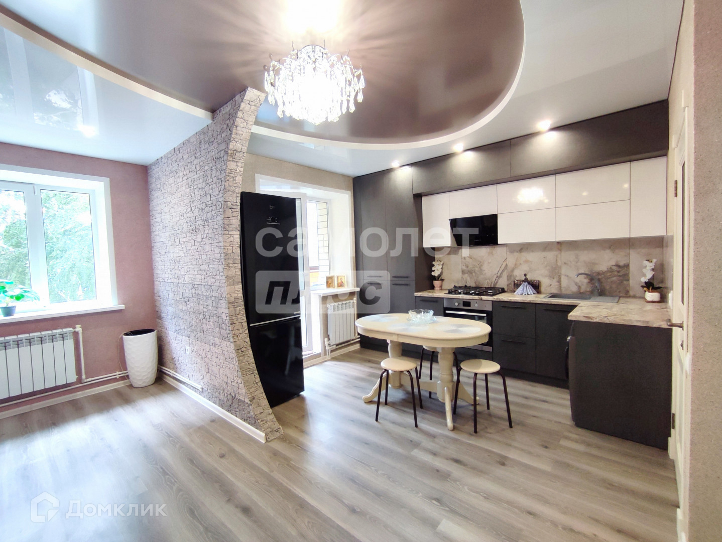 Квартира расположена на 3-м этаже, не угловая. В квартире очень удобная планировка, сделана большая кухня-гостиная, просторный санузел с большой ванной, есть место для гардероба. Санузел полностью отделан плиткой, установлено зеркало с подсветкой и шкафчики для хранения. В квартире сделан дорогостоящий ремонт, установлен встроенный кухонный гарнитур, многоуровневые потолки с подсветкой, качественные межкомнатные двери, дорогостоящая сделанная на заказ входная дверь. Балкон застеклен, так же отделен дополнительной дверью тамбур на несколько соседей. Вся мебель и техника (кроме холодильника) остается новым владельцам.