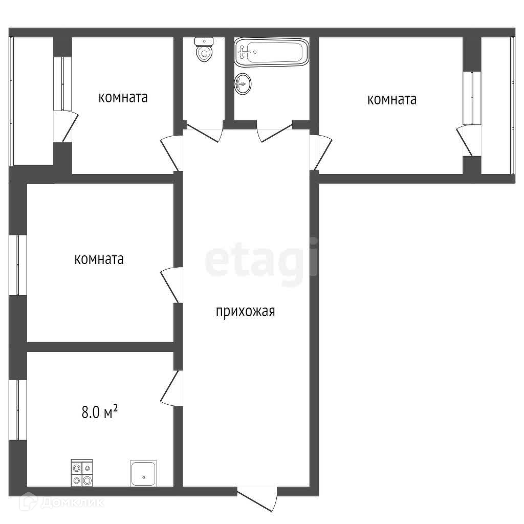 К квартире прилагаются 2 благоустроенных подвала и место дляхранения в общем тамбуре на этаже.