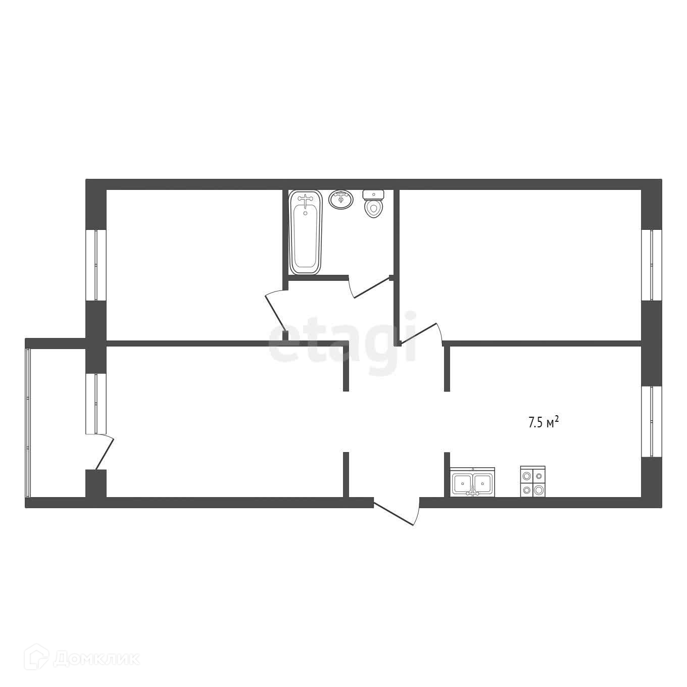 Площадь кухни 7.5 м2