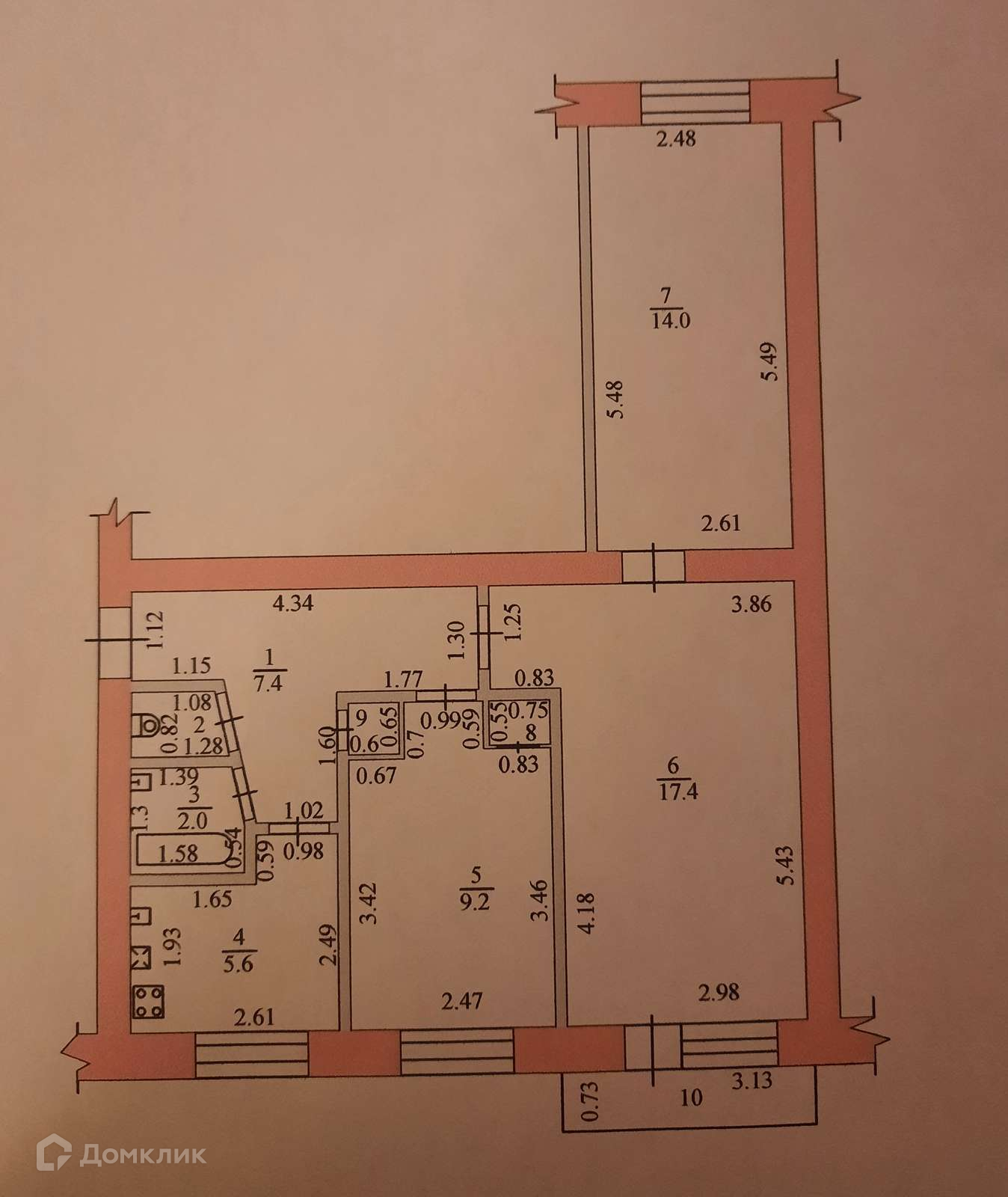 Общая площадь 57.4 м2