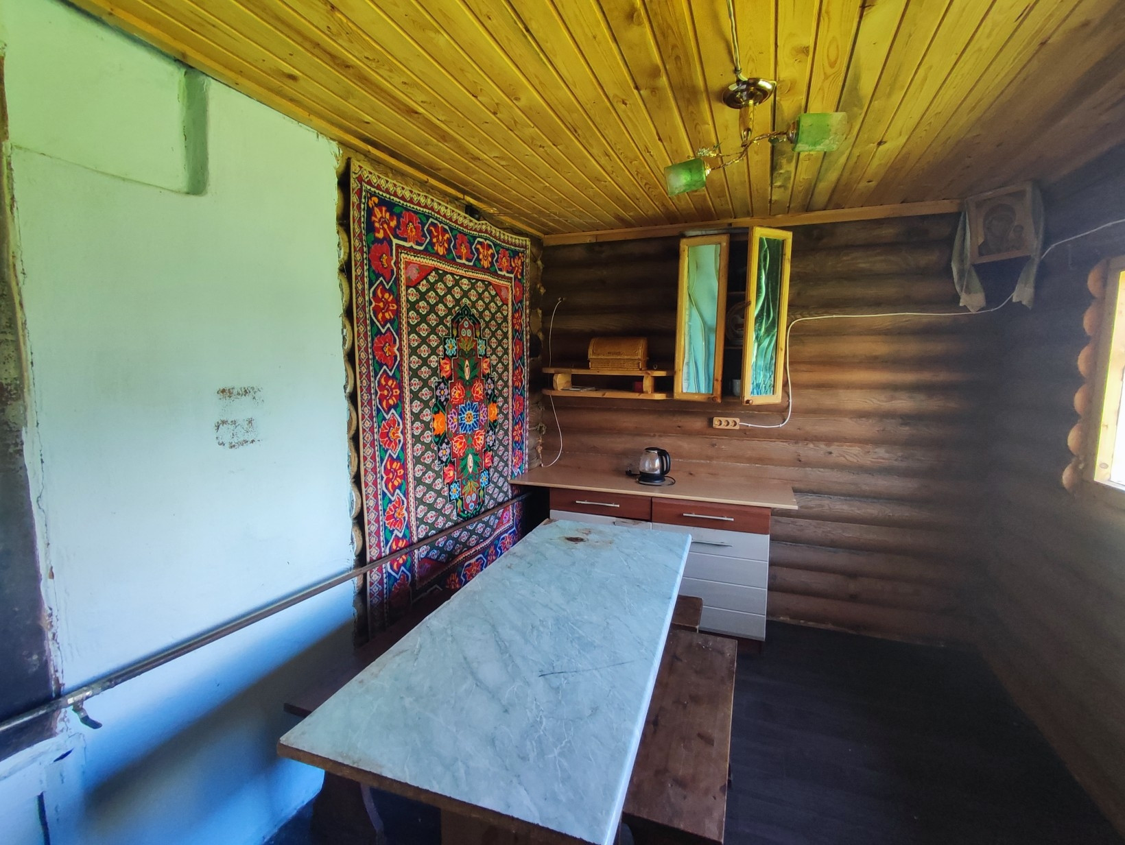 Также есть застеклённая терраса. Бревно обработано снаружи и внутри, также имеется подпол, обработан бордоской смесью.