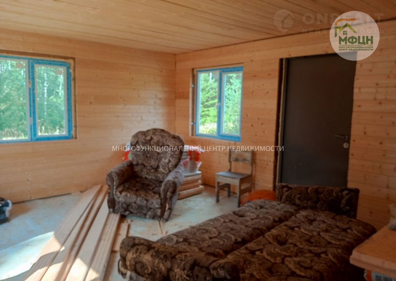 На участке построен и зарегистрирован дом из бруса, 30 кв. м. Дом внутри обшит материалом из карельской сосны (имитация бруса). Отопление – тёплый пол. Стеклопакеты. Со стороны озера – окно с видовыми характеристиками.