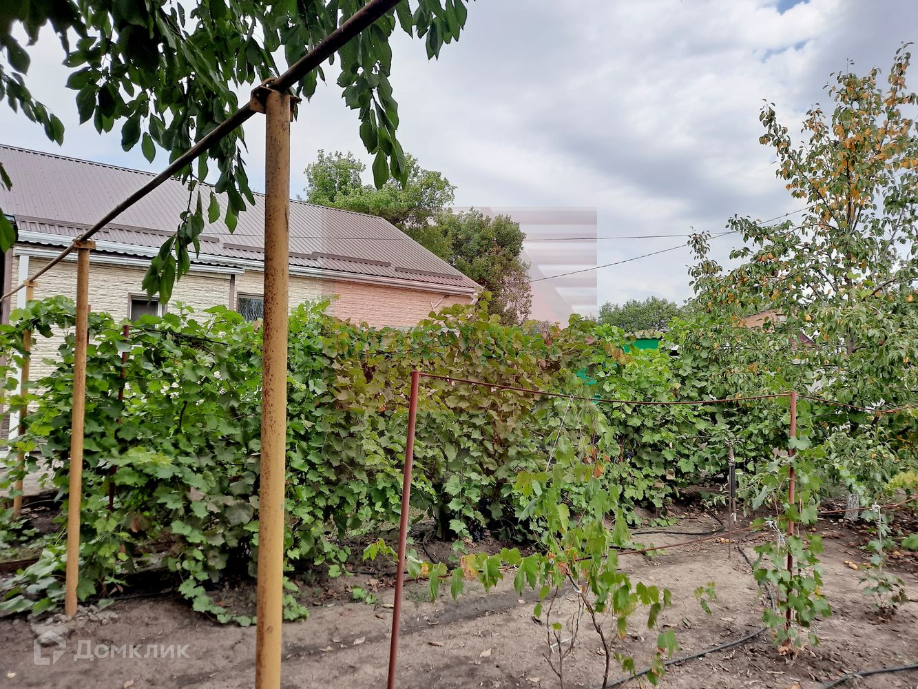 На участке растут черешня, вишня, яблоня, абрикоса, слива, виноград.