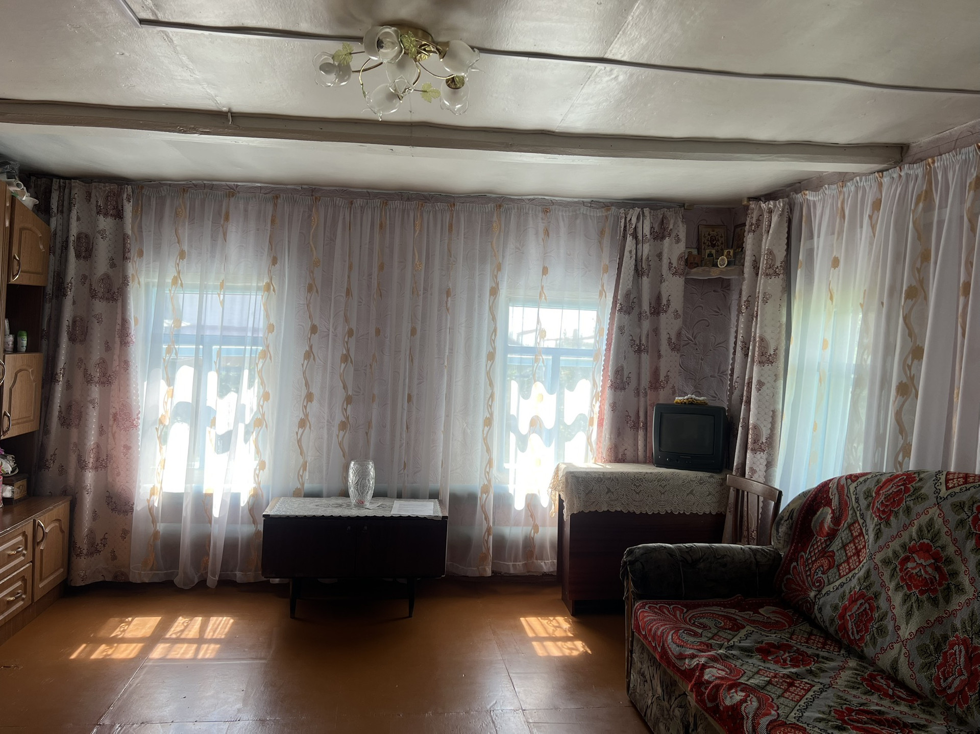 Продается дом с Зем.участком  и мебелью,п. Сургут Ул.Сургутская. Общая площадь 46 кВ.м, две комнаты и кухня. Газовое отопление, свет,вода,канализация яма. Материал стен бревно, крыша шифер, окна деревянные. Небольшой гараж,сараи. Земли 13 соток ровного, широкого участка.    Цена 1 100 000. Продажа в ноябре  2024 г.