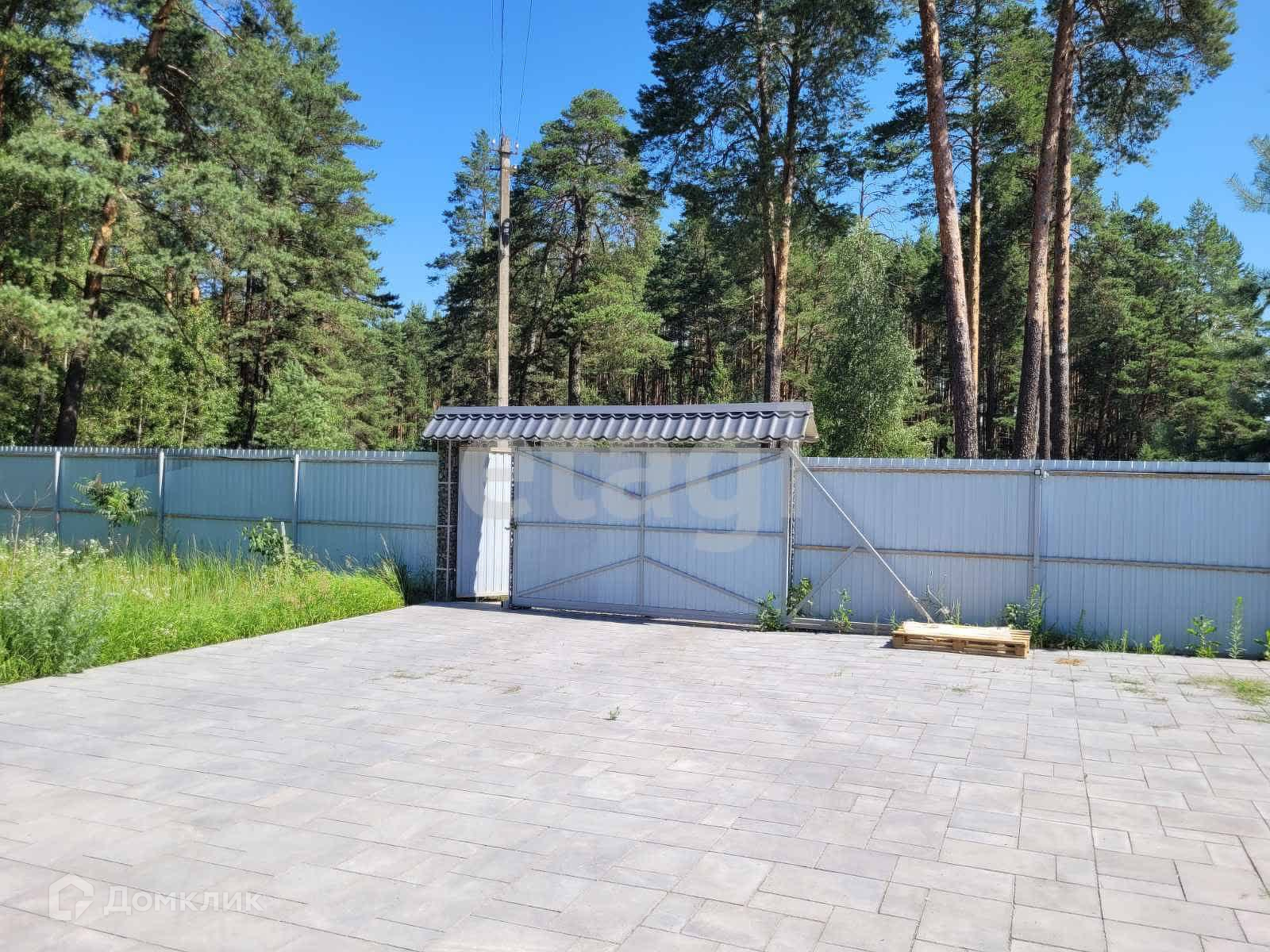 Участок ровный, без уклона, правильной прямоугольной формы обнесен забором из профлиста, недавно уложена тротуарная плитка, по периметру участка сделано освещение. На участке посажены плодовые деревья. Участок находится в лесу: нет соседей.