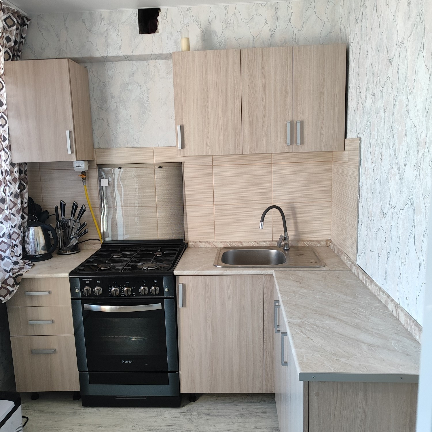 В квартире выполнен ремонт, благодаря чему жильё выглядит свежим и современным. Заменили проводку и трубы, выровняли стены и пол, установили новую сантехнику, тёплый пол в с/у , бойлер на 100 литров воды. Квартира распашонка, с изолированными комнатами.