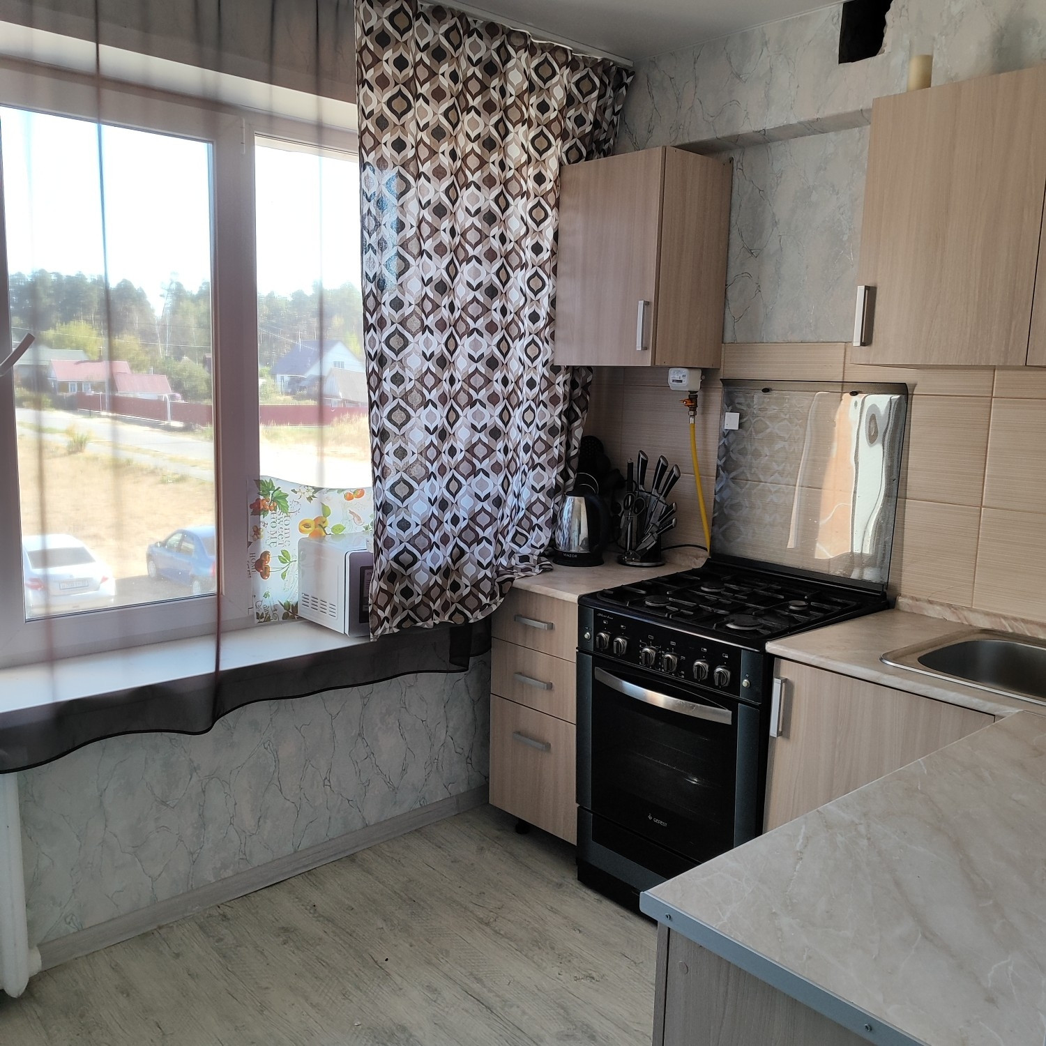 Квартира имеет продуманную планировку: жилая площадь составляет 31 квадратный метр, а кухня — 9 квадратных метров. Здесь также имеется балкон, который можно обустроить под зону отдыха или небольшой зелёный уголок. Санузел совмещённый, что позволяет более рационально использовать пространство.