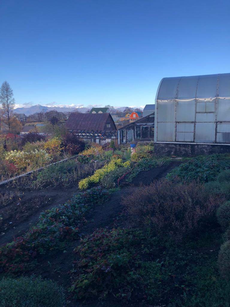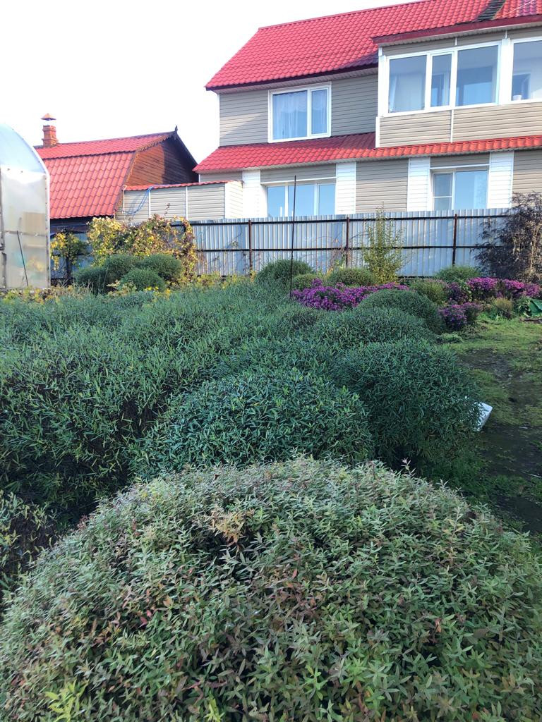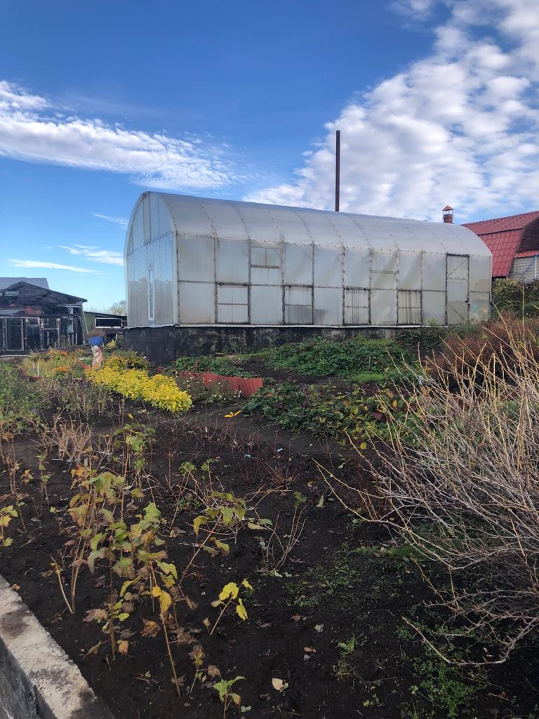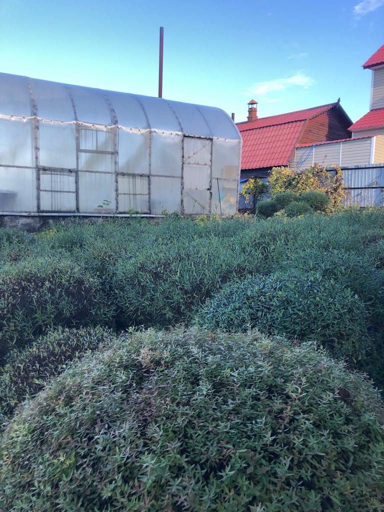 На участке находится три теплицы с различными растениями, а так же очень много зелени  и посадок различных деревьев .