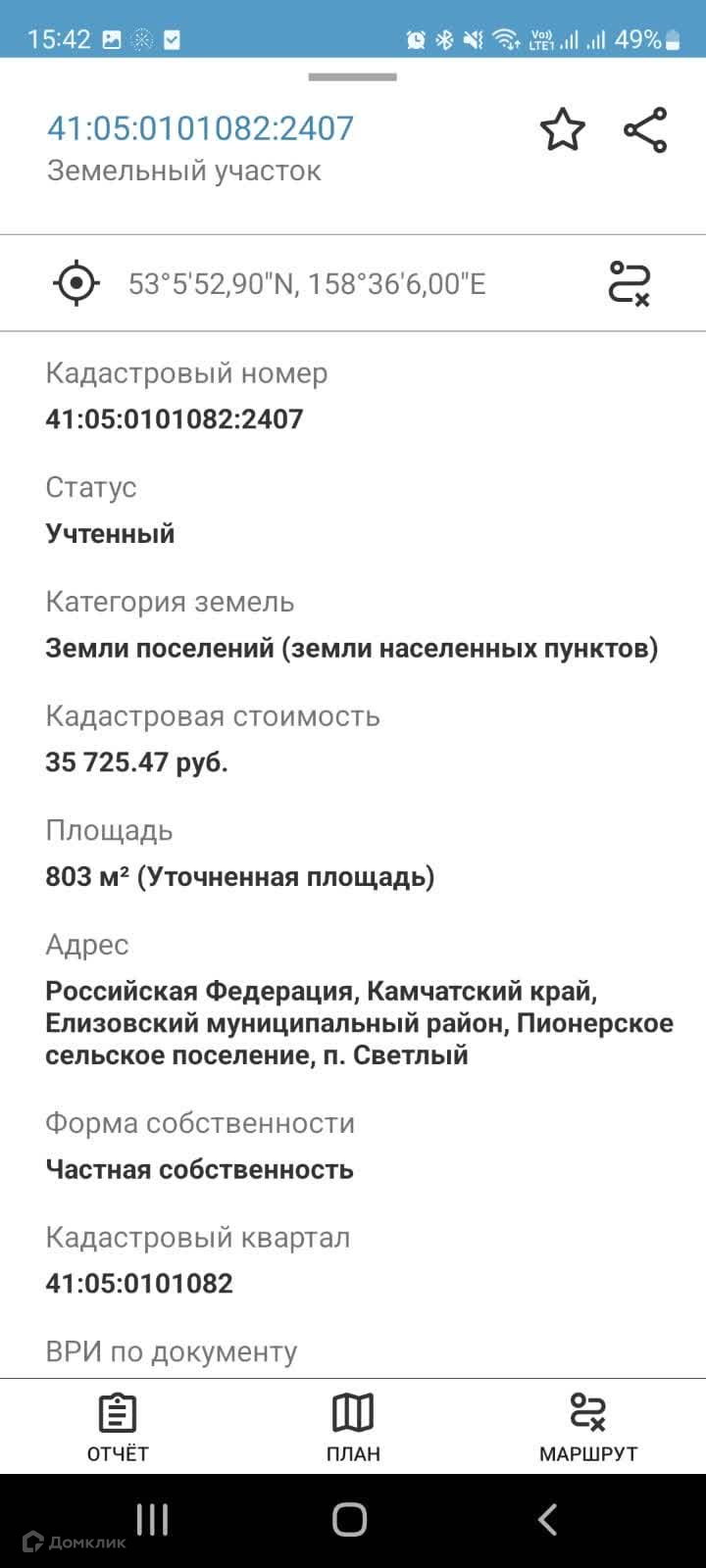 Номер в базе: 10542478. Район: Светлый п.