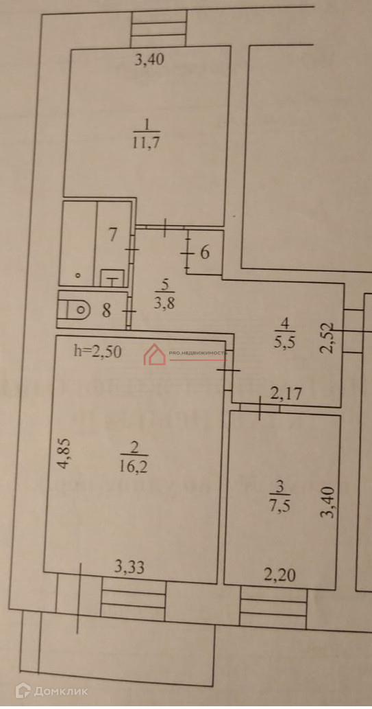 Высота потолков 2.5 м