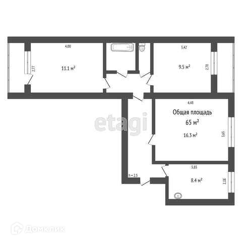Общая площадь 65 м2