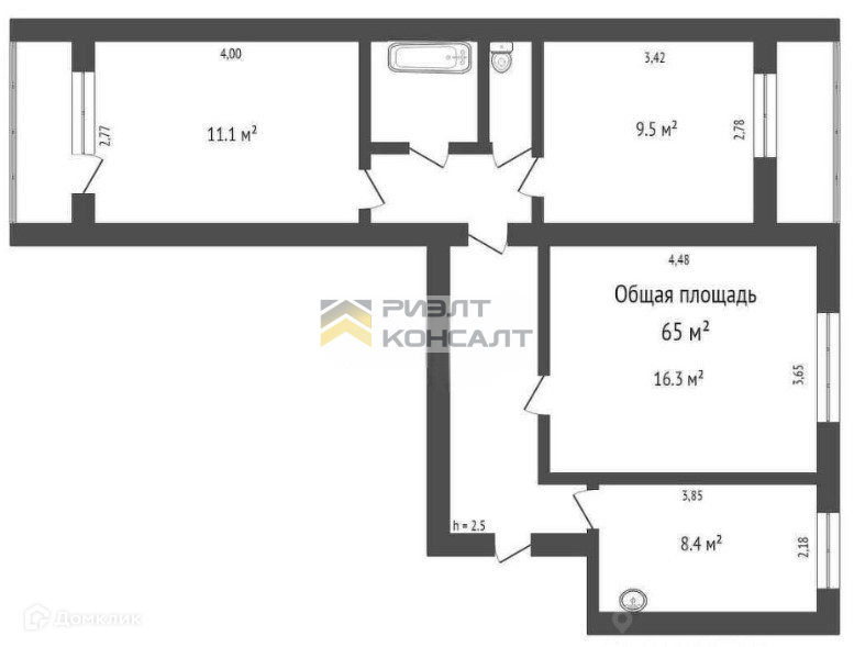 Общая площадь 64.1 м2