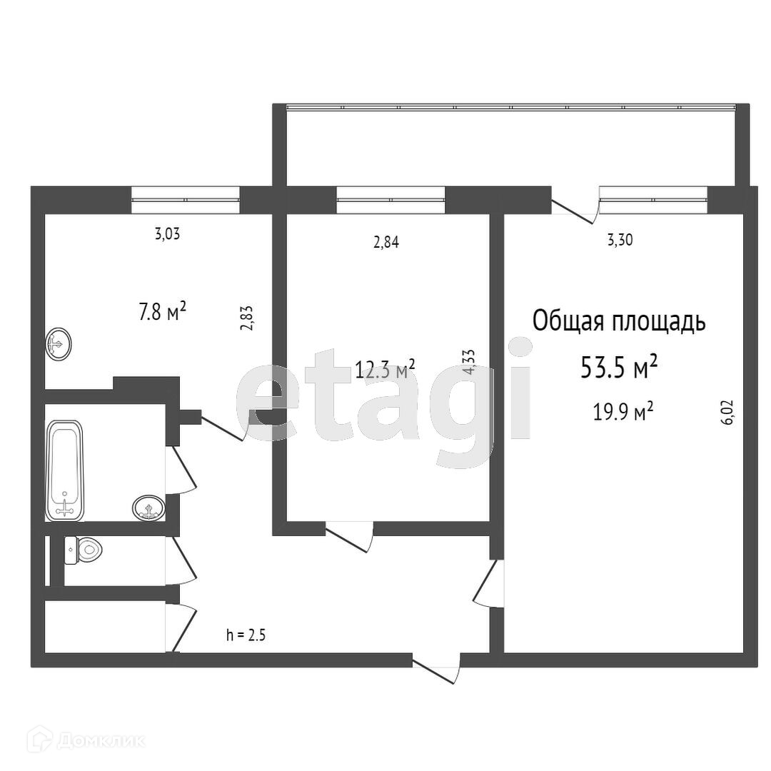 Общая площадь 54.8 м2