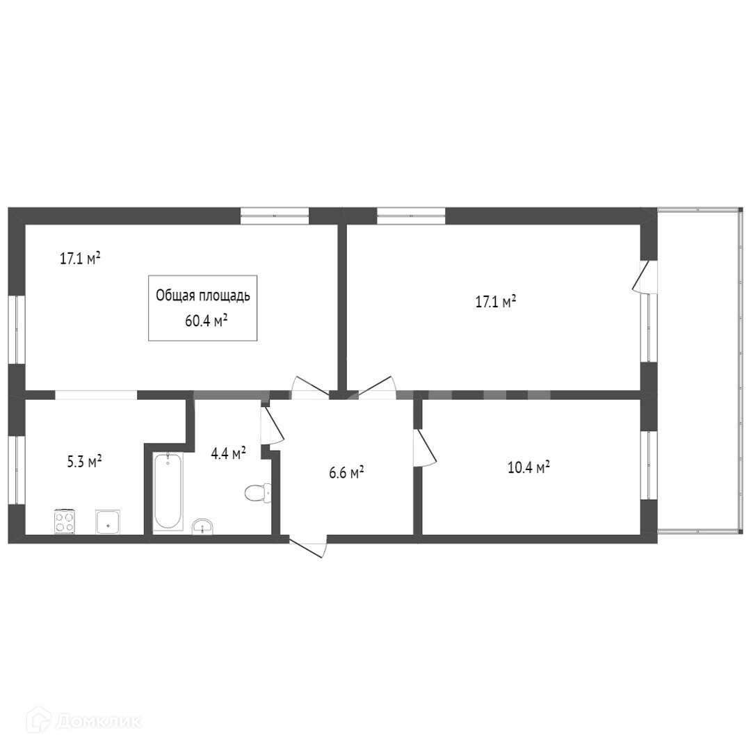 Общая площадь 61.2 м2