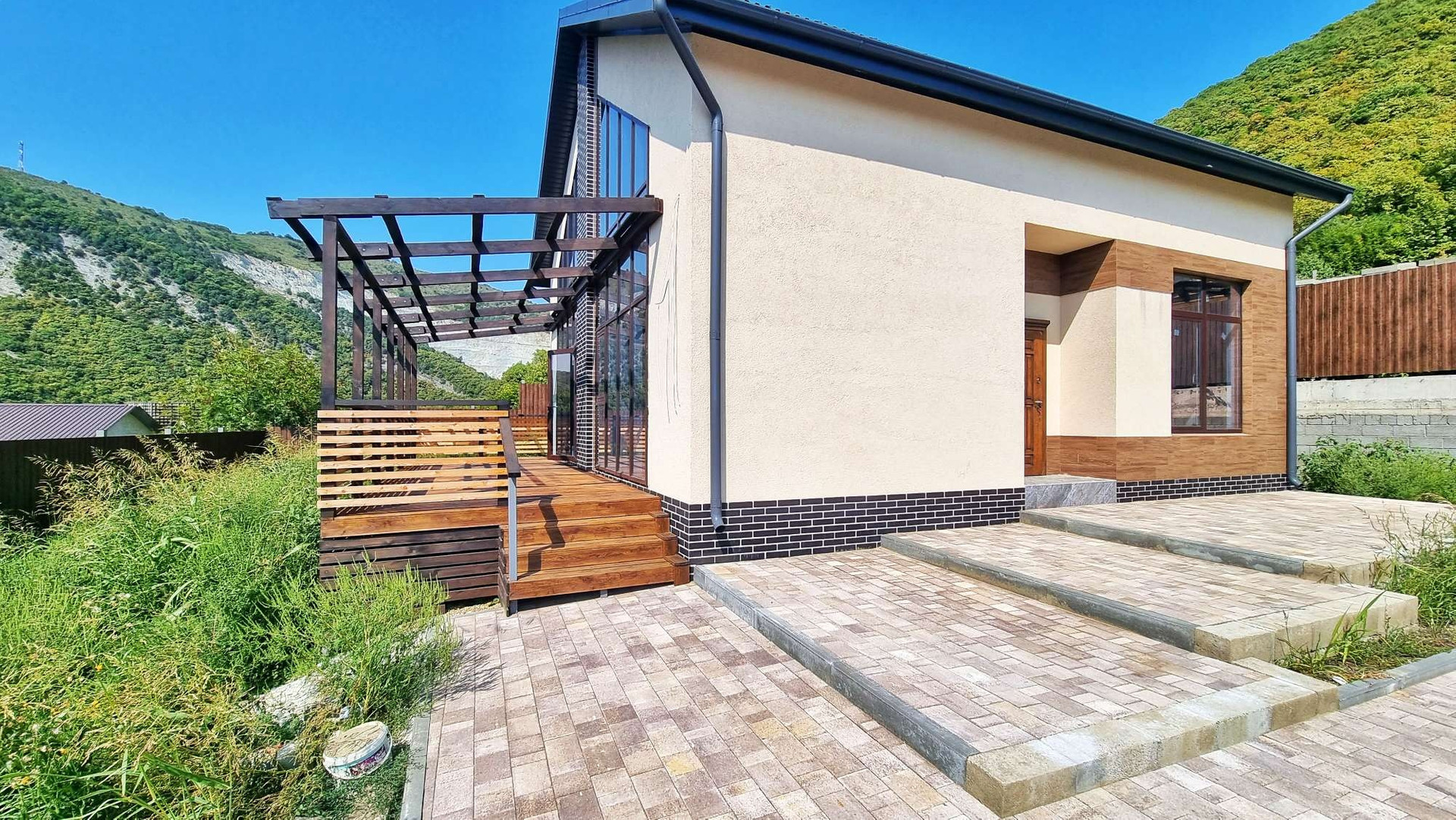 Вокруг дома находятся горы, горная речка, в общем вид красивый.