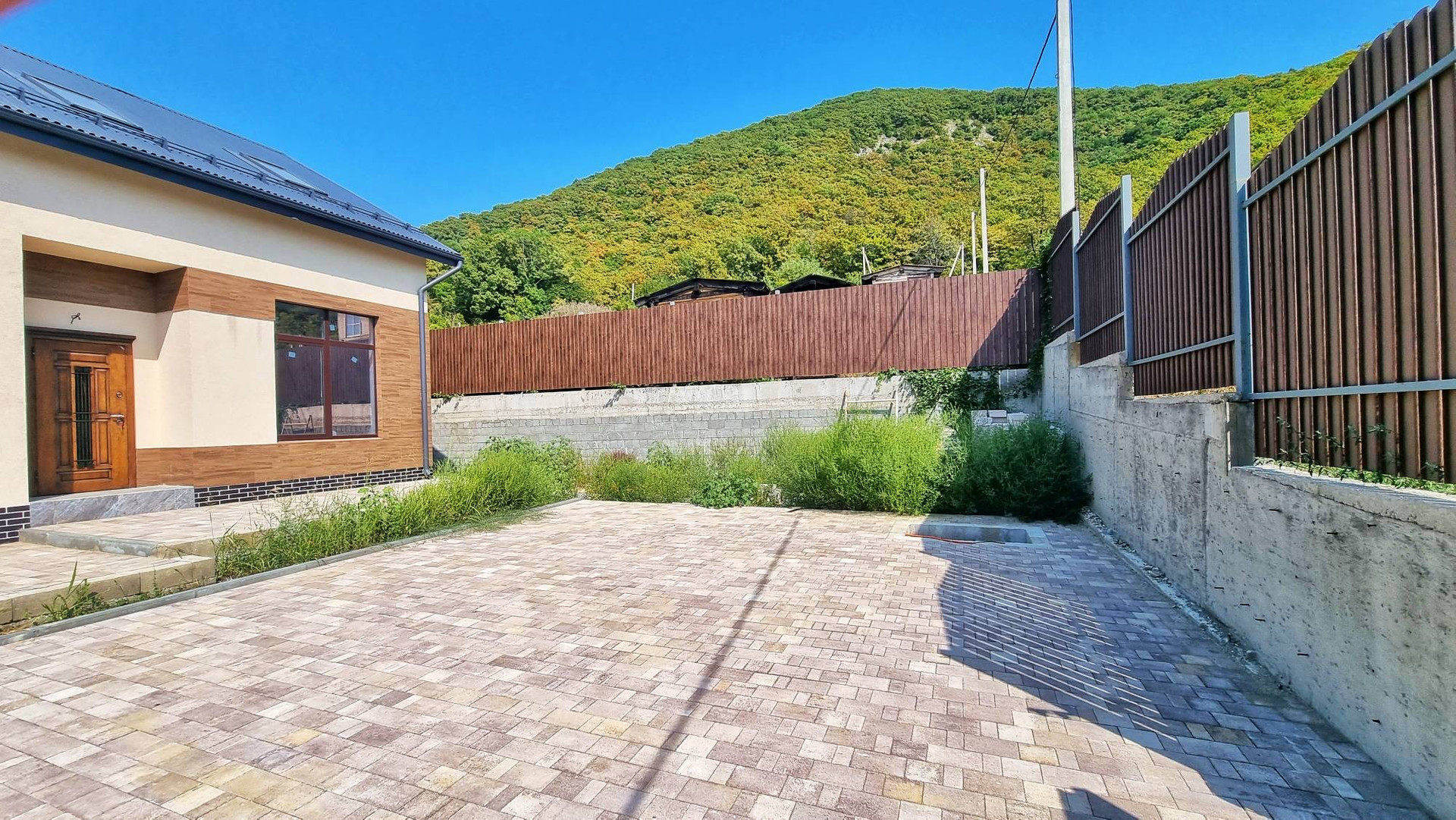 Двор почистят, останется положить плитку. Так же по проекту предусматривается Баня, Беседка. Стоянка для авто.