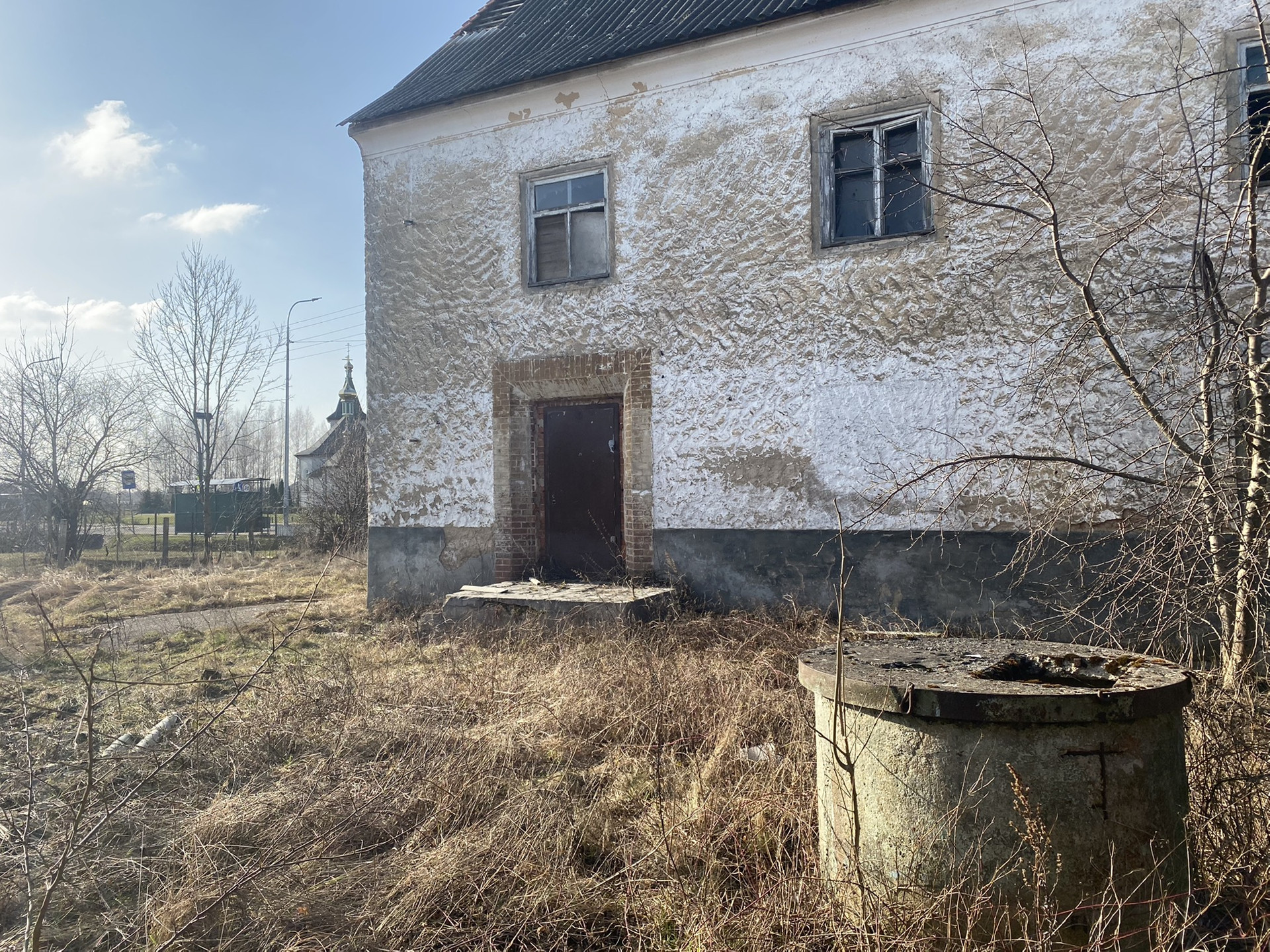 Во дворе есть большая хозпостройка и колодец