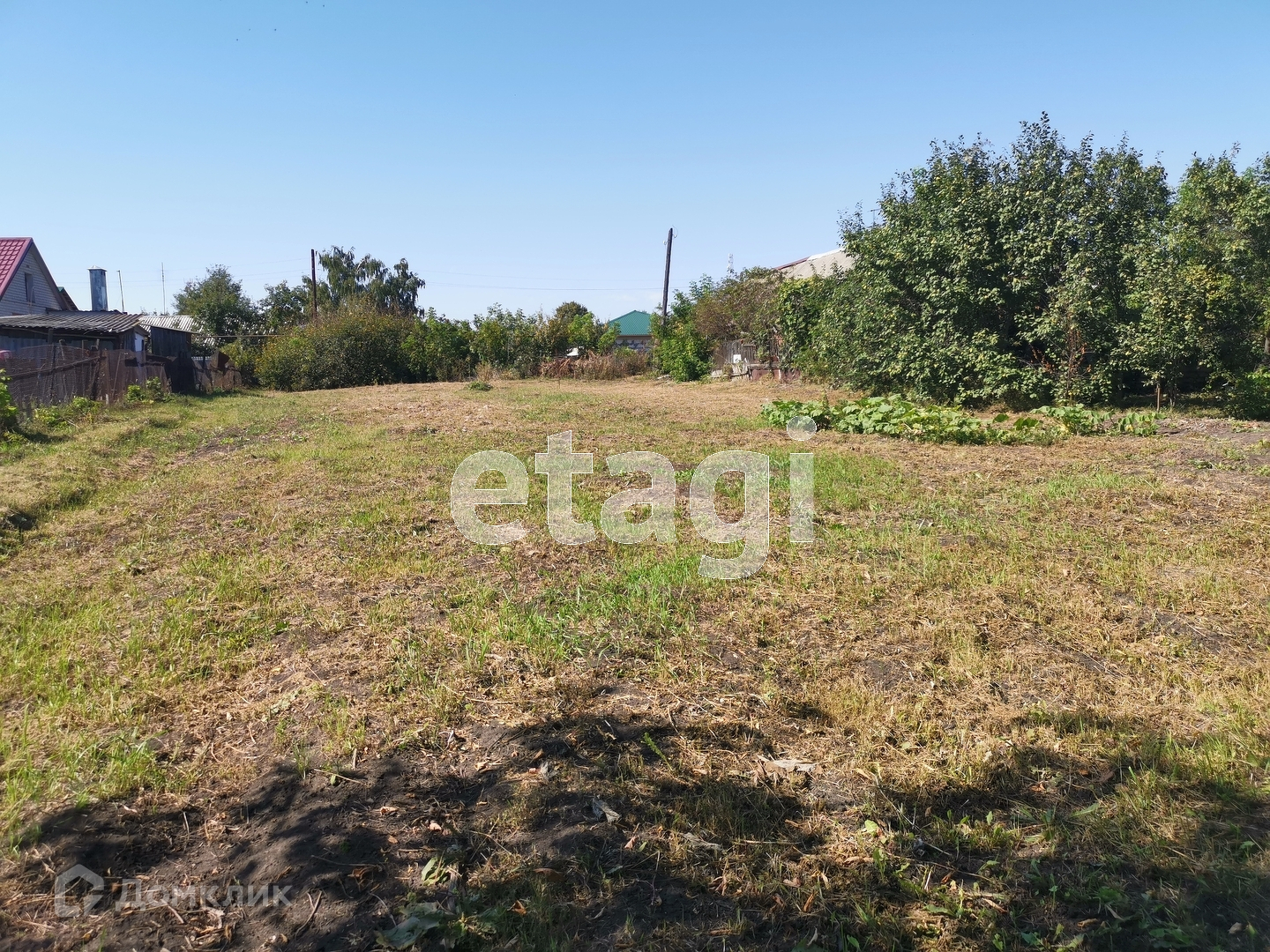 Большой участок (половина разделана, половина нет). Плодовые деревья (яблони, сливы, вишня).