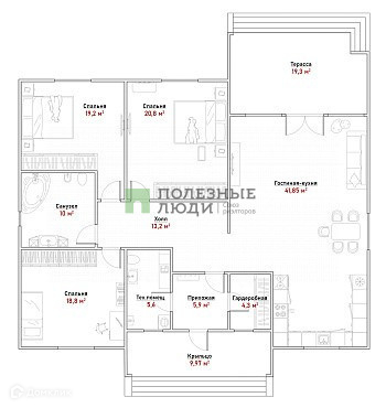 Жилая площадь 59.9 м2