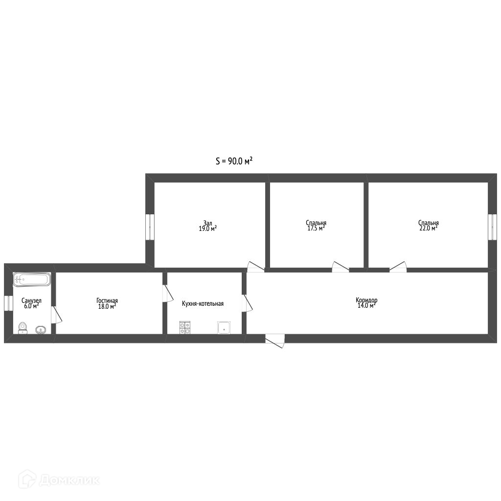 Общая площадь 90 м2