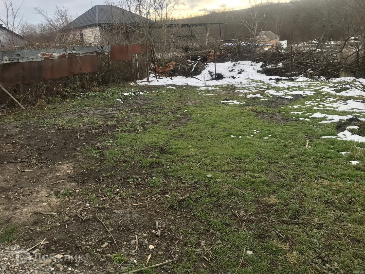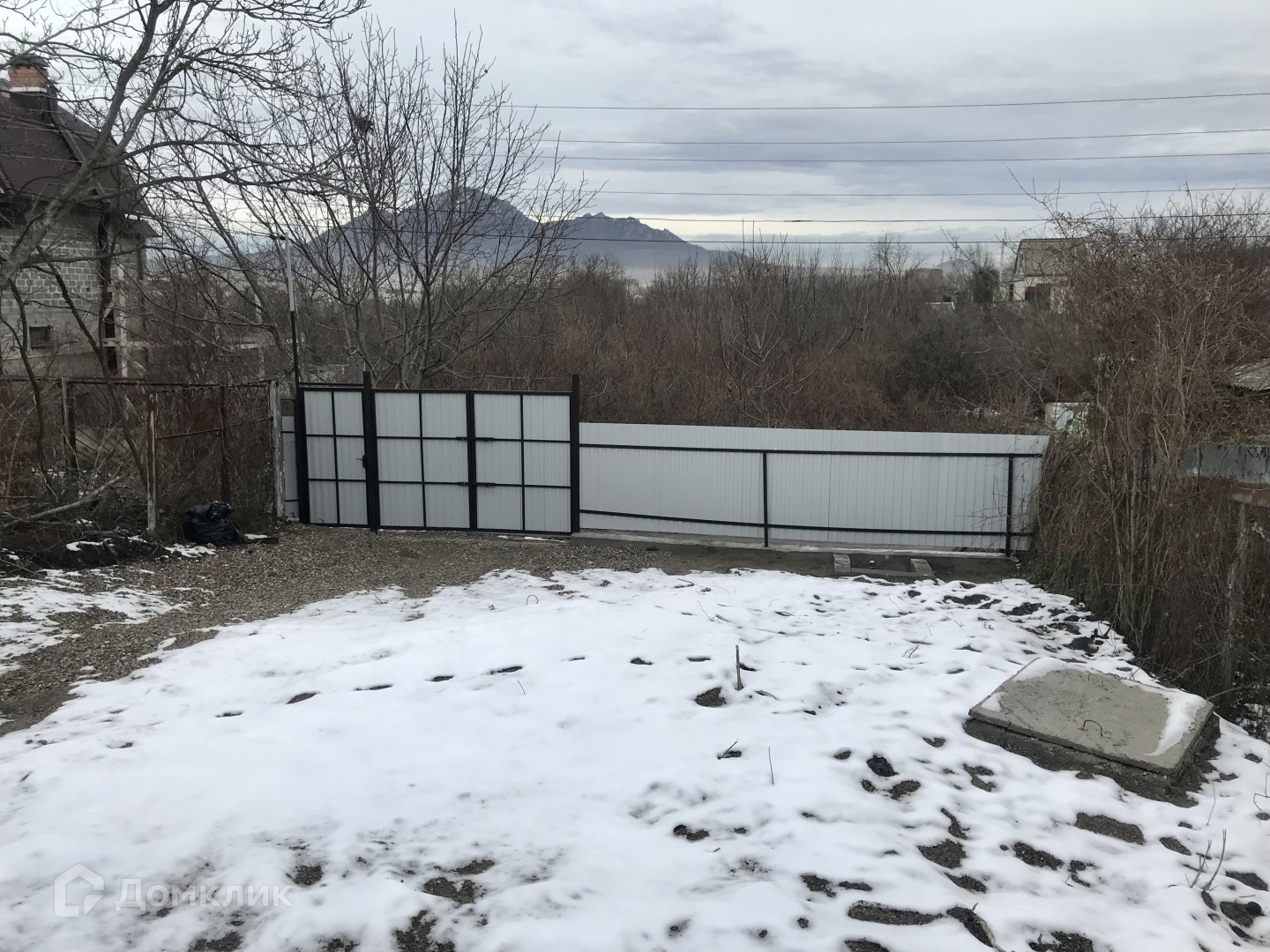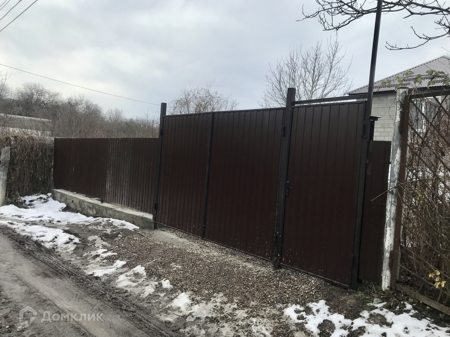 Двор отсыпан щебнем, огорожен забором