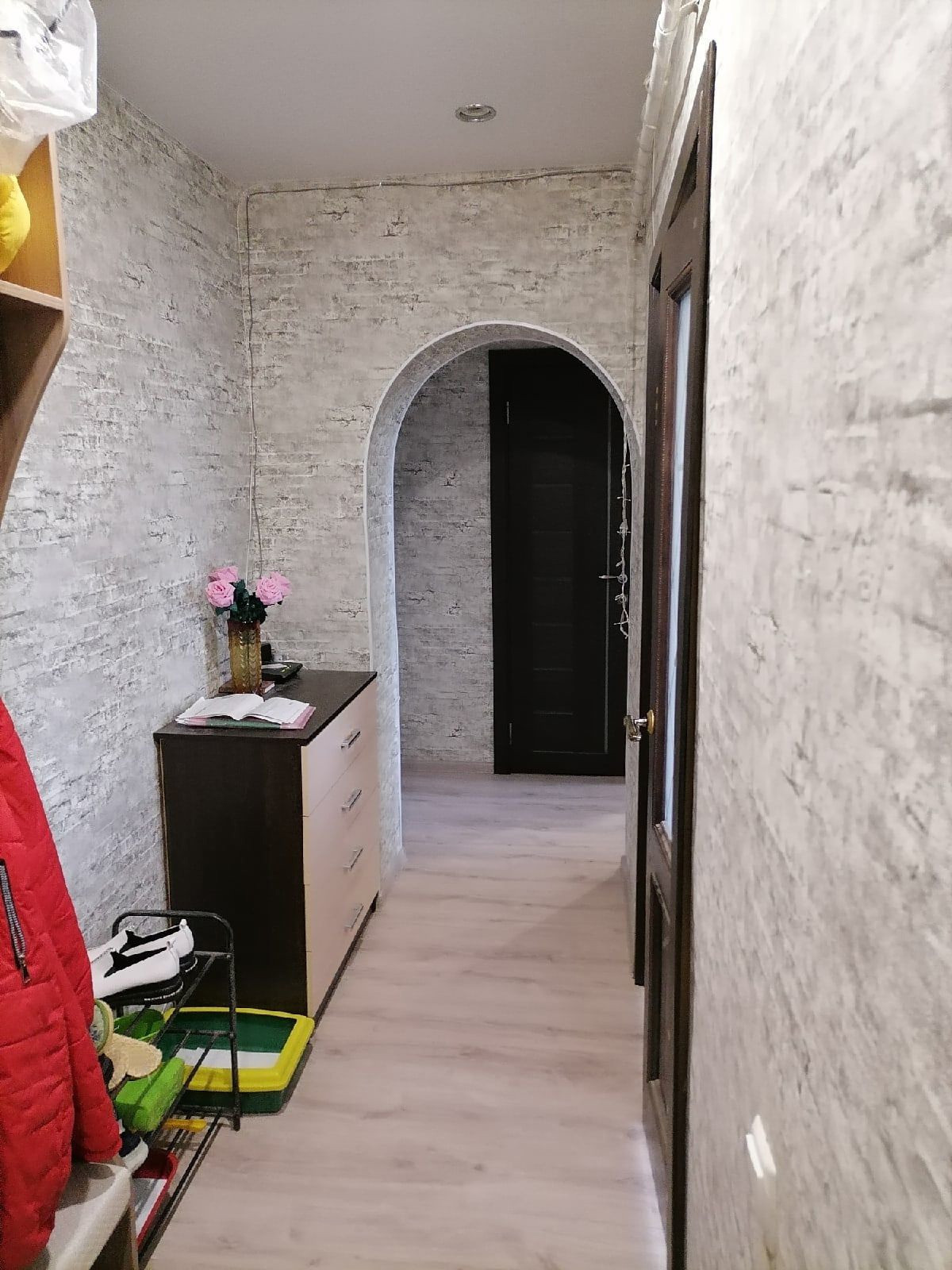 Все трубы поменяны. Стеклопакеты. Большой коридор. Два арочных прохода на кухню и в коридоре.