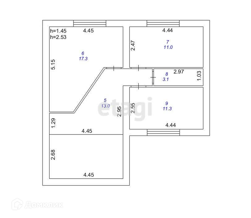 Общая площадь 129.6 м2