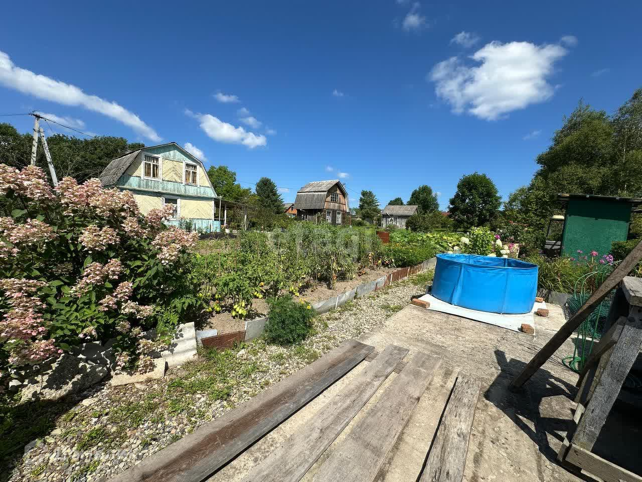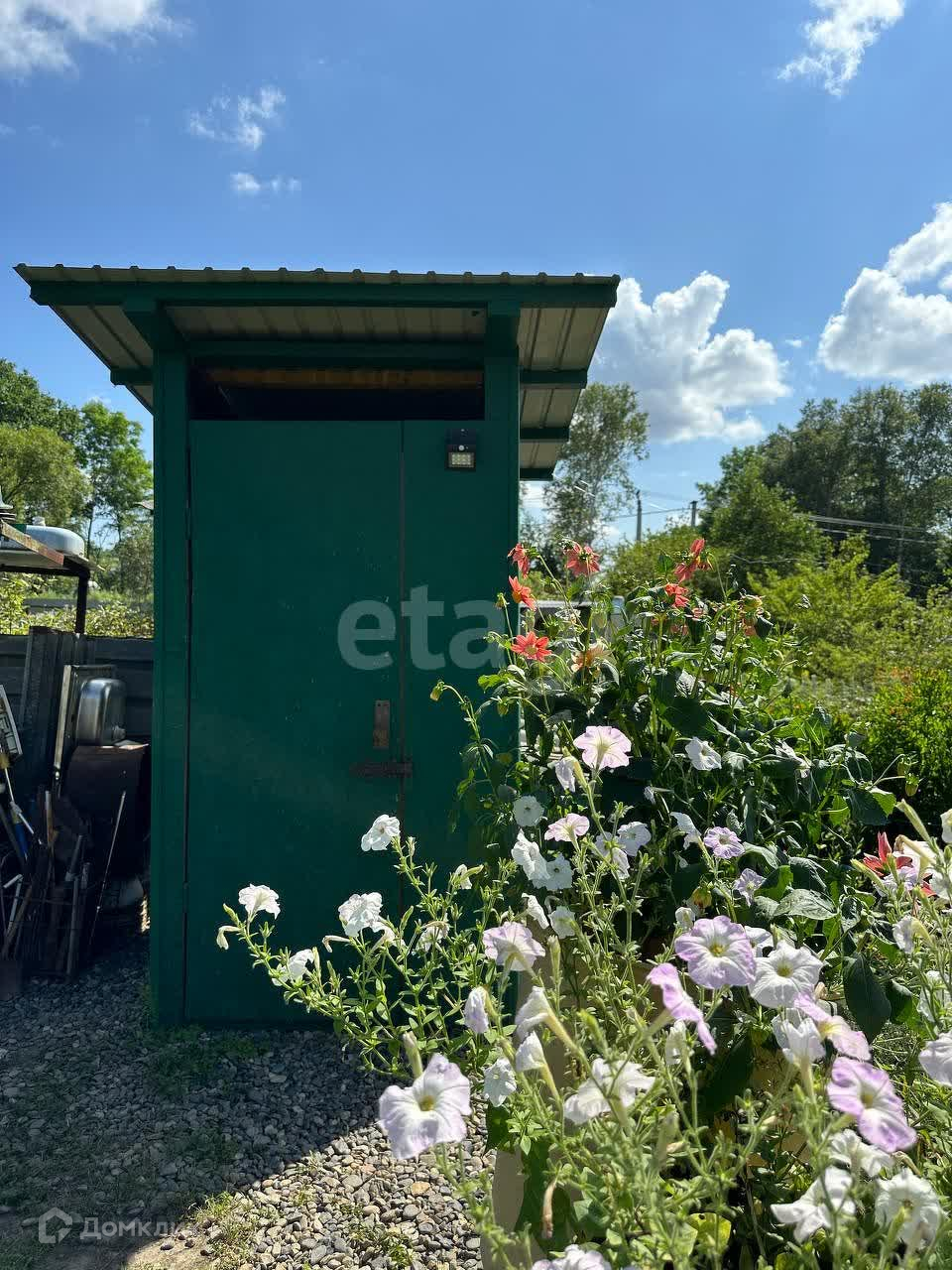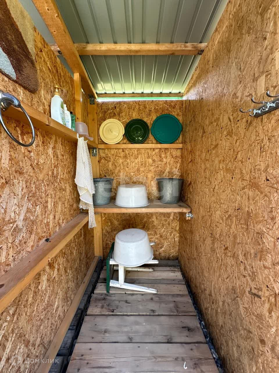 На участке подготовлен фундамент под установку бани или бассейна. Чистый внешний туалет. Подсобные помещения, летний душ. Участок огорожен. Рядом есть площадка для постановки на стоянку 5-6 машин.