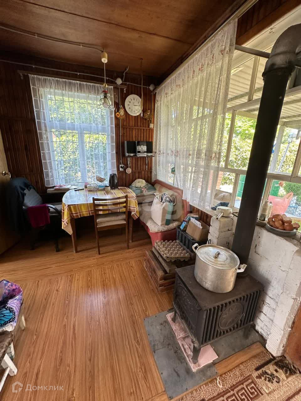 Дом 60м2, 2ух этажный. Большая веранда, комната с печью, кухня-гостиная, спальня, и большая спальня на 2 этаже. Новая электропроводка. Дровяная печь, электрическая печь, а также 2 газовых баллона. Вся мебель и техника остается.