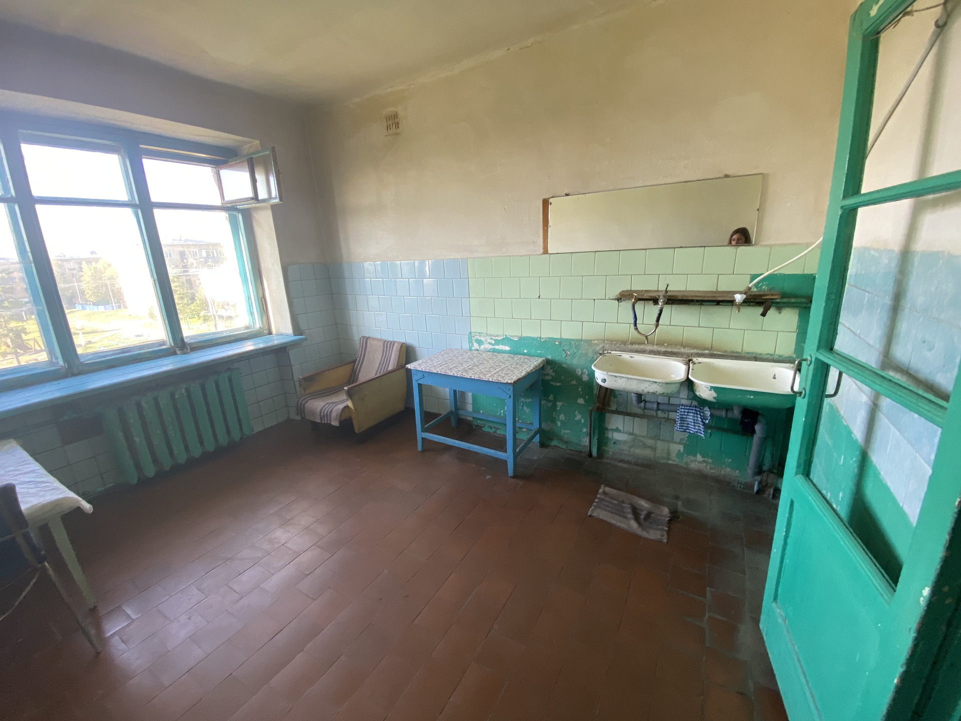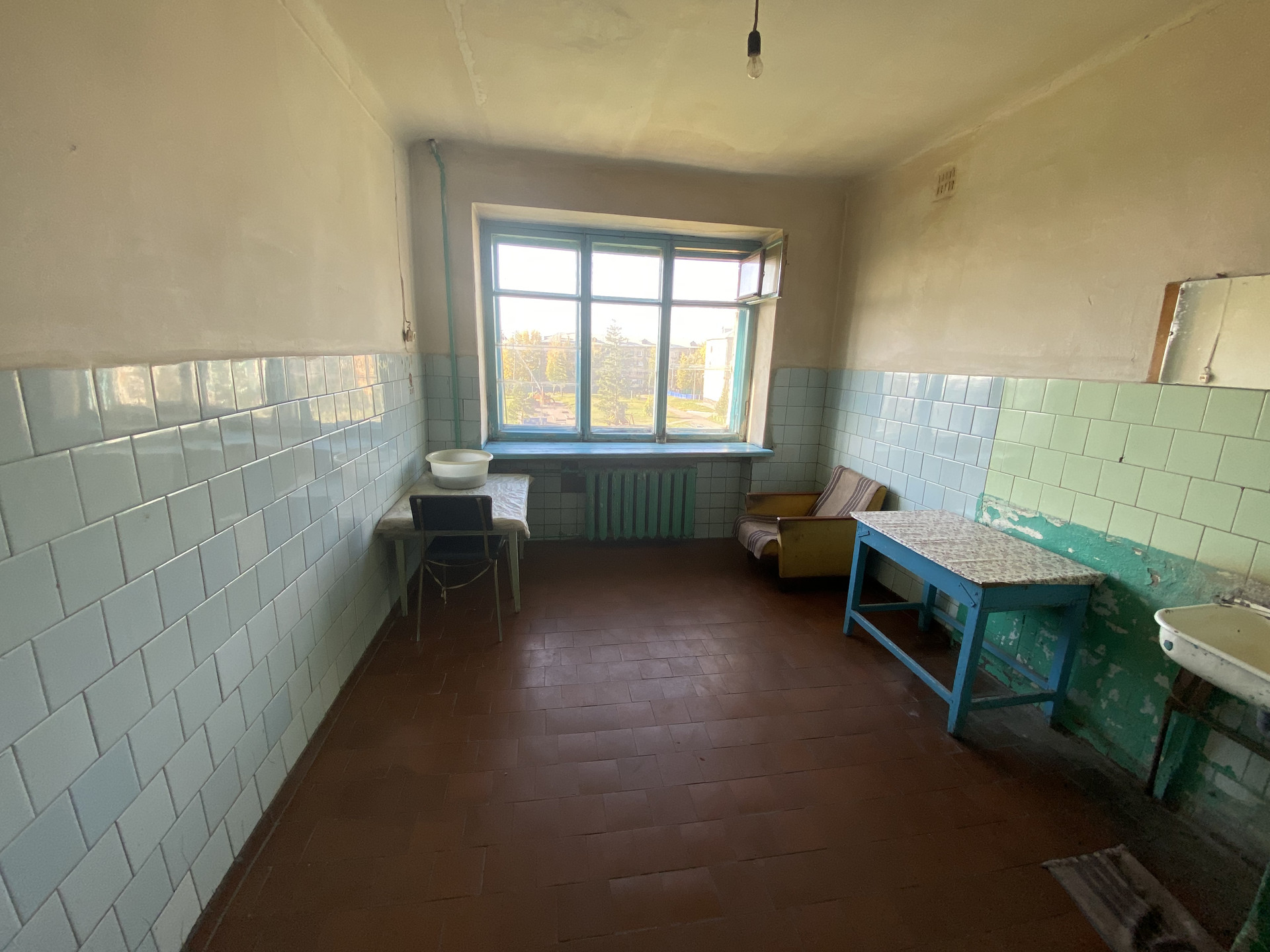 Секция общего типа, 2 комнаты, можно сделать душ в комнате и раковину. Общая ванная на этаж, кухня.