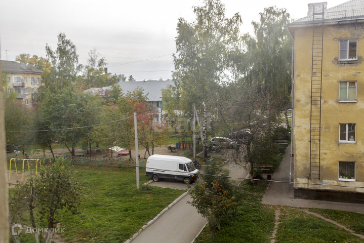 Окна выходят во двор, где видна и парковка и гуляющие дети.