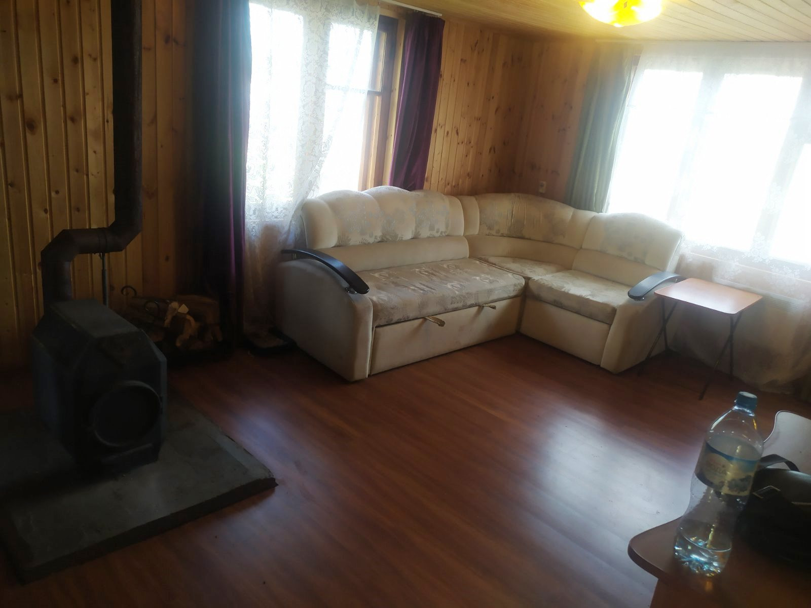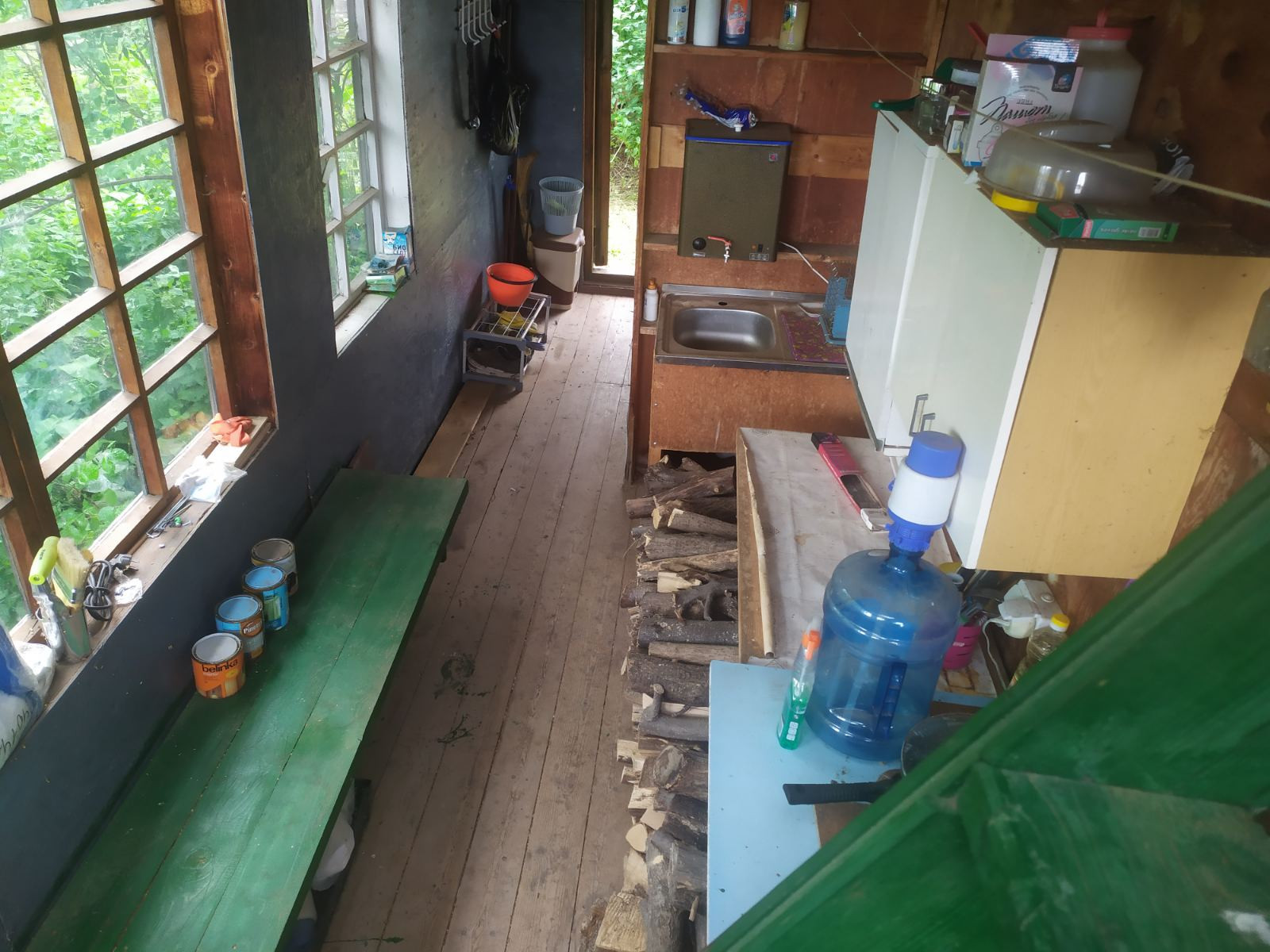 В доме есть: дровяная Чудо-печь, мебель, бытовая техника: холодильник, электро-плитка, микроволновка, тепло-обогреватель, тв.