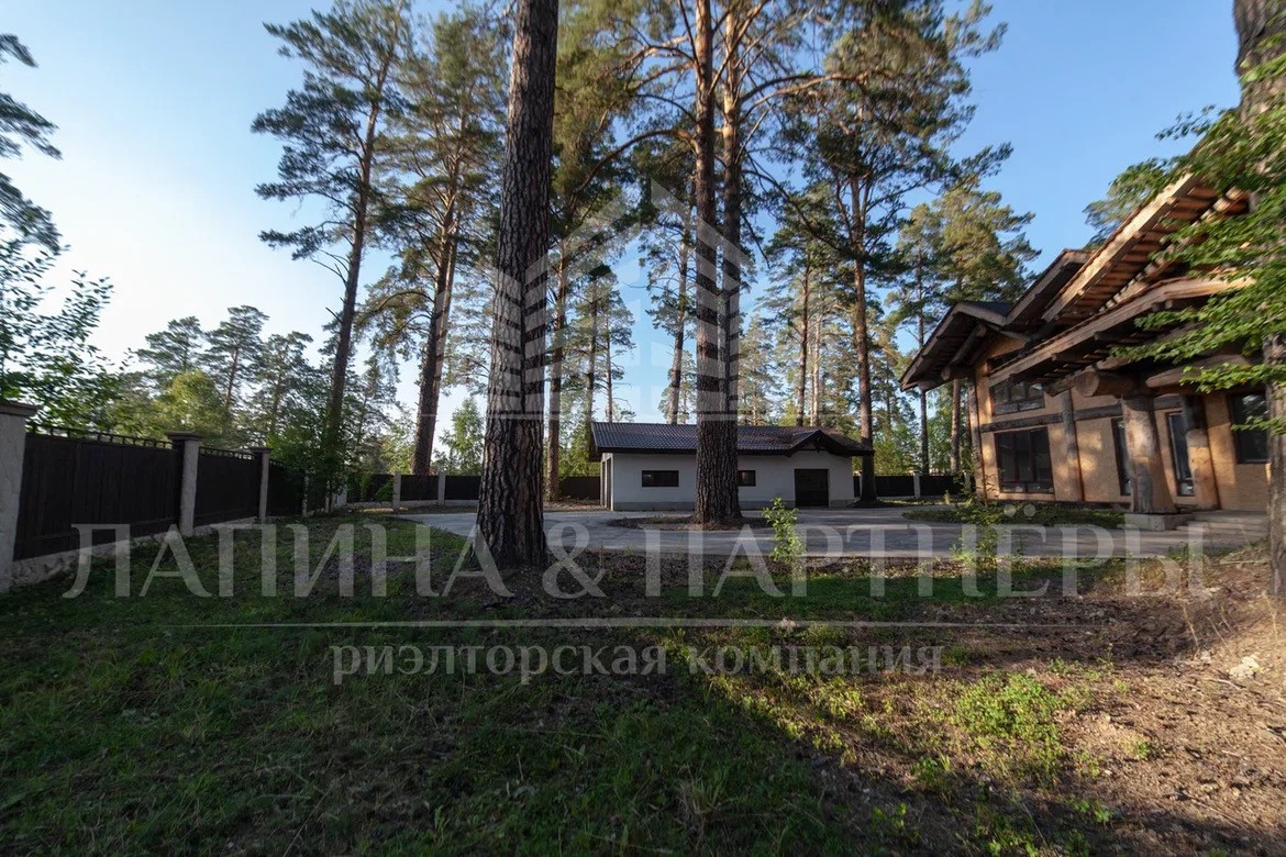 Площадь земельного участка составляет 50 соток, на территории которого расположены вековые сосны, большой вместительный гараж на 4 машины, имеется  отдельный выезд на центральную дорогу.
