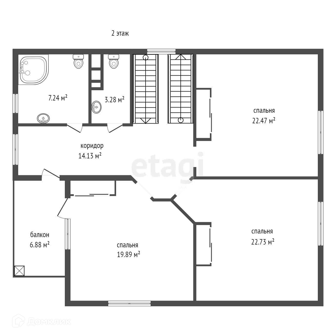 В доме 5 комнат, на первом этаже расположены котельная, кухня, гостиная с камином и гостевой комнатой, на втором - три спальни, балкон. На каждом этаже находятся сан. узлы.