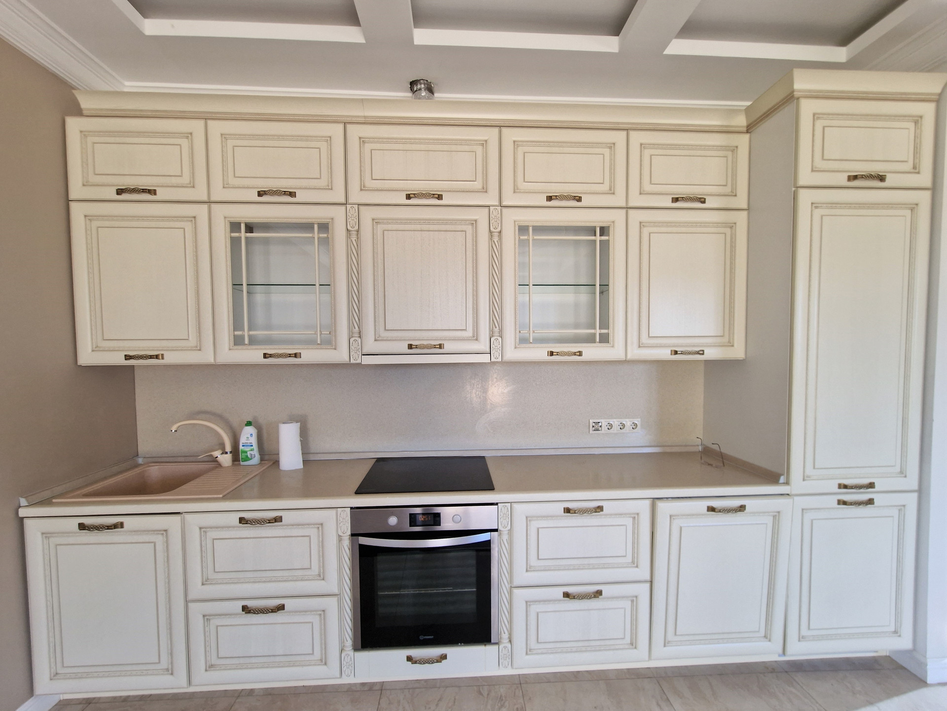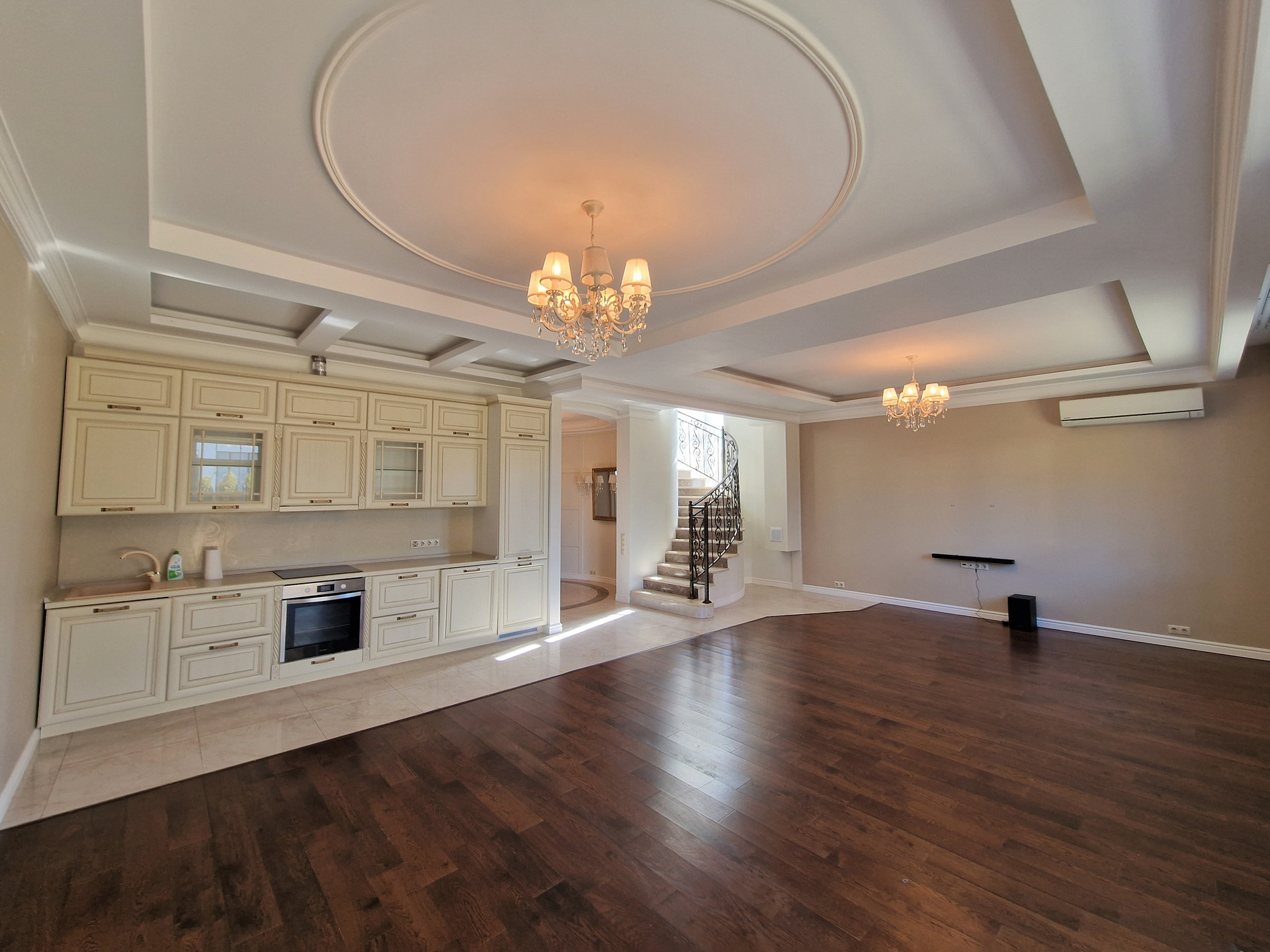 В таунхаусе выполнен высококачественный ремонт из натуральных материалов. Установлена кухня со встроенной техникой Indesit (варочная панель, духовой шкаф, посудомоечная машина, холодильник).