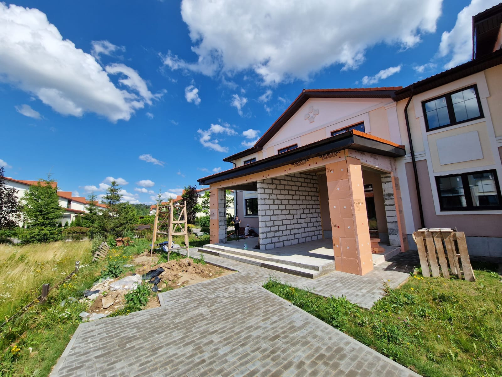 Дополнительно сделано: ливневая канализация, новая отмостка, новая брусчатка, утепление фундамента, увеличенная терраса заднего двора, увеличенная высота потолков (1 эт. 3.5 м, 2 эт - до 4.1 м.).