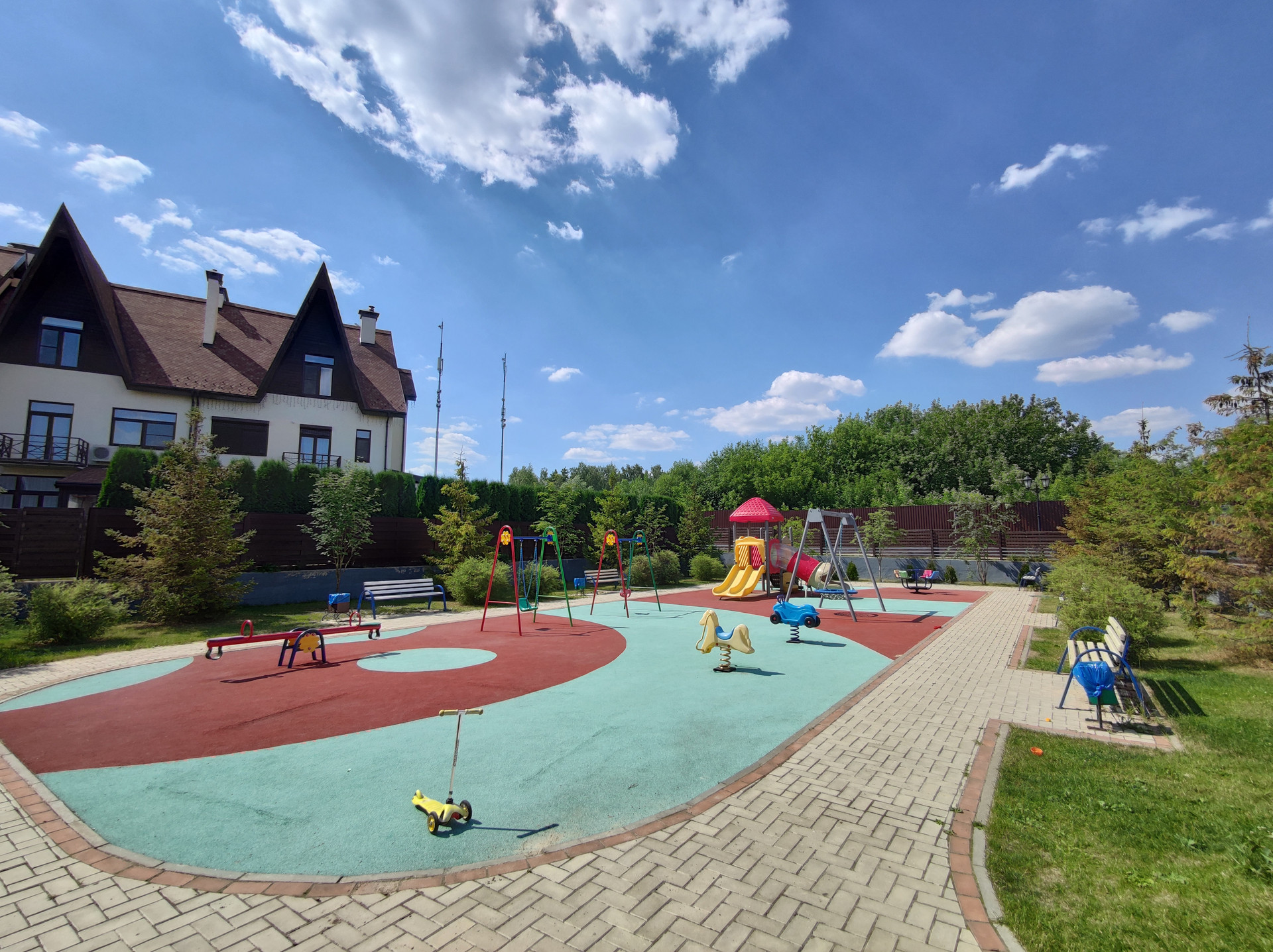 Поселок таунхаусов клубного типа, круглосуточная охрана, благоустроенная зеленая территория, детский сад, 3 детских площадки, футбольное поле, каток, теннисный корт, зона уличных тренажёров, действует собственная управляющая компания. Рядом магазины, торговые центры, лесной массив, Москва-река и озеро. Всего 12 км до МКАД, 30 минут до Москва-сити, удобные выезды на Новорижское и Рублево-успенское шоссе.
