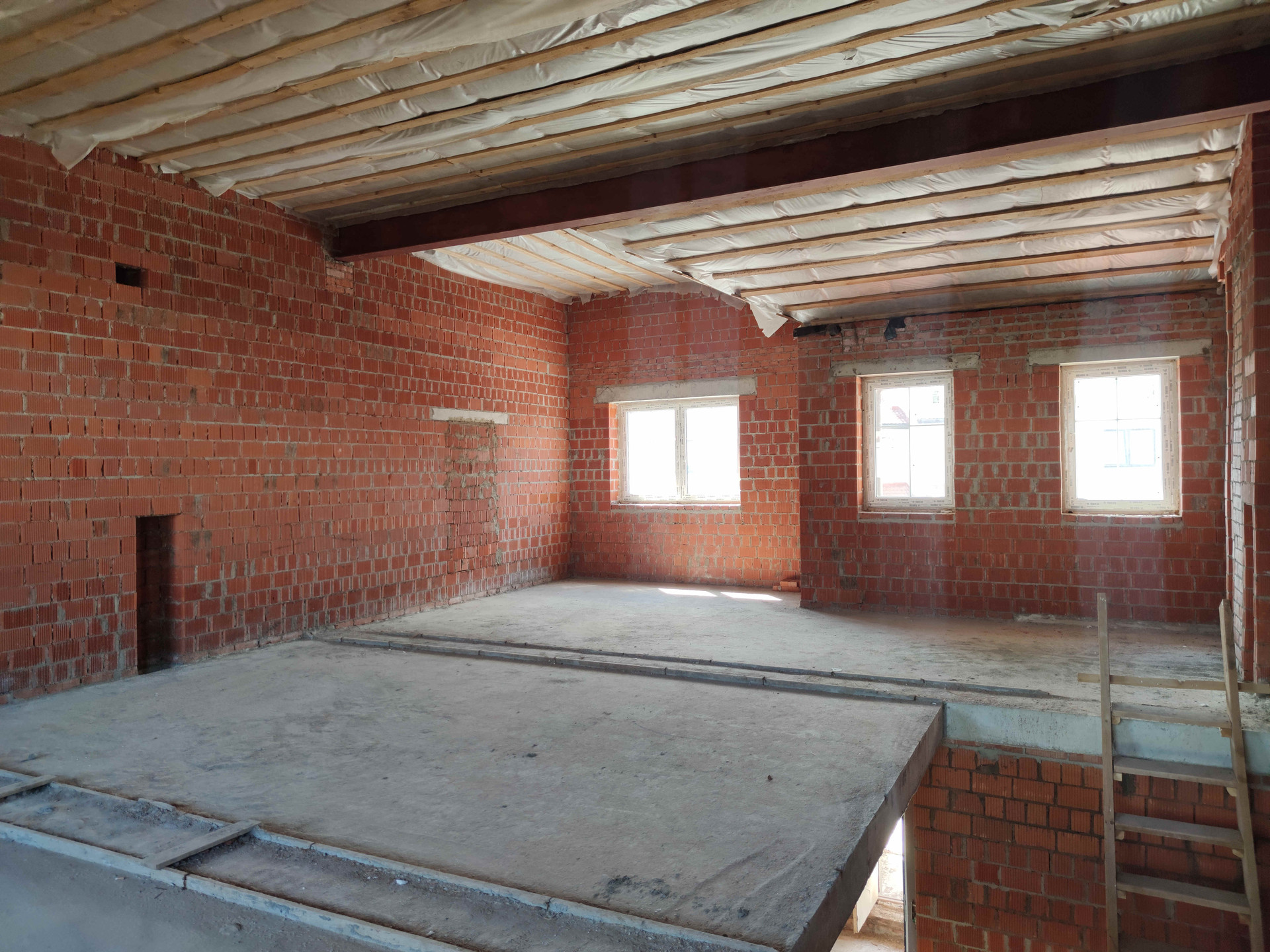 Дополнительно сделано утепление фундамента, увеличенная терраса заднего двора, увеличенная высота потолков (1 эт. 3.5 м, 2 эт - до 4.1 м.).